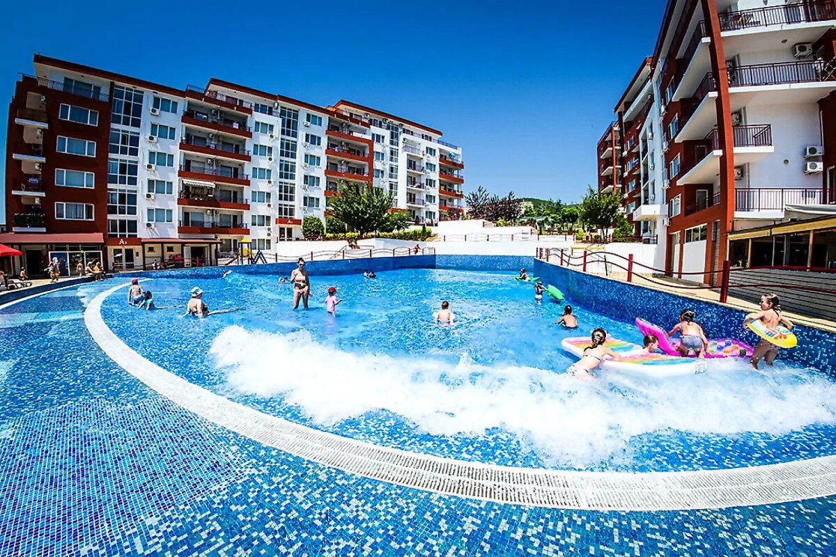 · 5 детски басейна, няколко детски площадки,