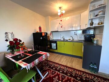 Апартаментът е разположен на трети етаж, като сградата разполага с асансьор. Състои се от входно антре, всекидневна с кухненски бокс и трапезария, баня с тоалетна и душ кабина, спалня, тераса. Жилището е оборудвано с необходимата техника, напълно обзаведено, готово за нанасяне.