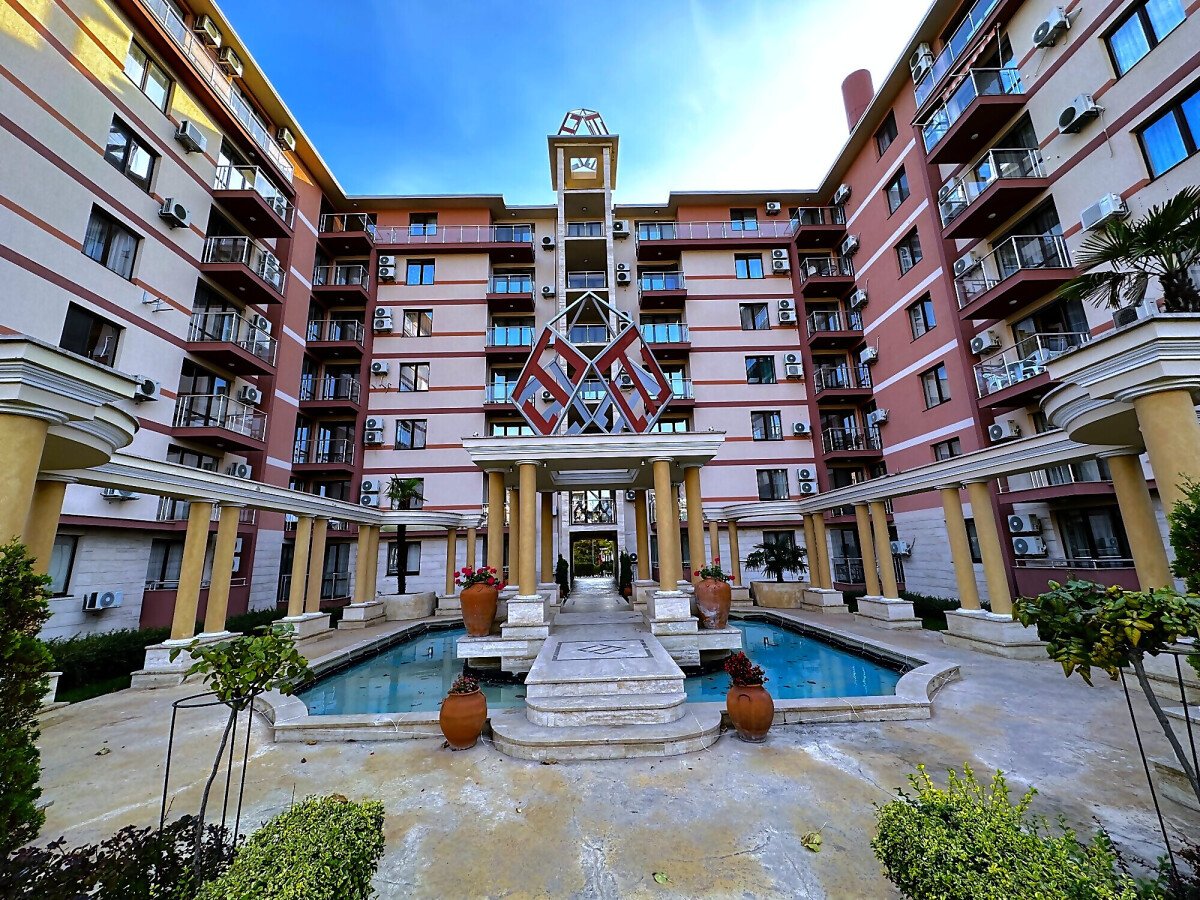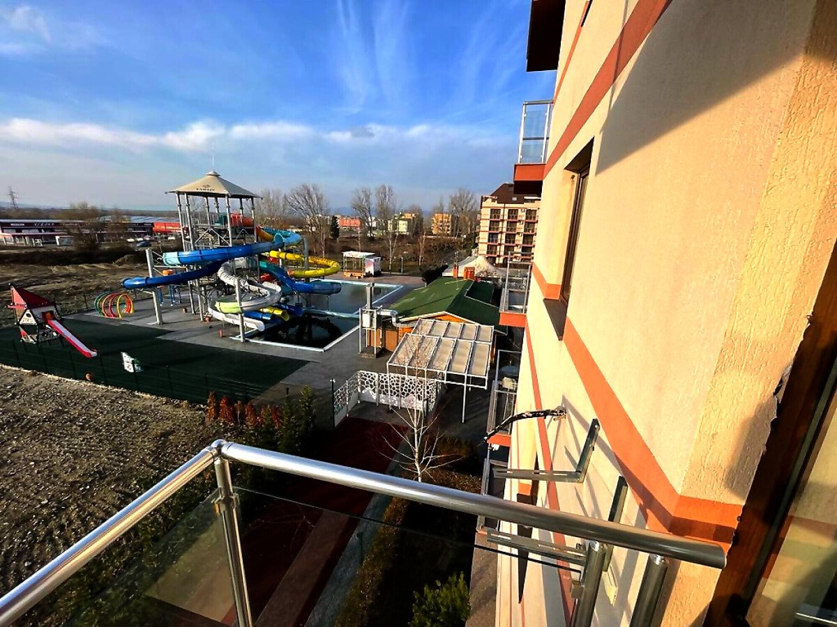 Комплексът е разположен в близост до чудесен озеленен парк и впечатлява с модерна архитектура. Сред многобройните удобства, които предлага са два външни басейна за възрастни, два детски басейна, водни пързалки, СПА център, външен и вътрешен ресторант, детска площадка, волейболна площадка, подземен и външен паркинг.