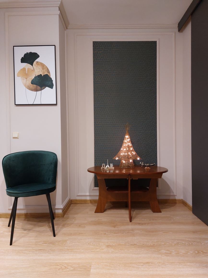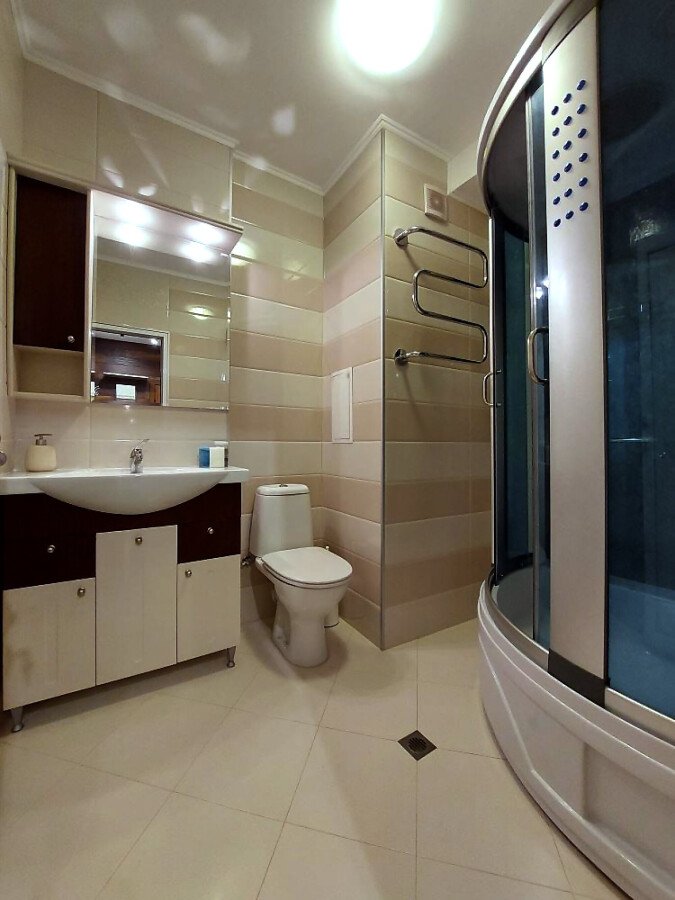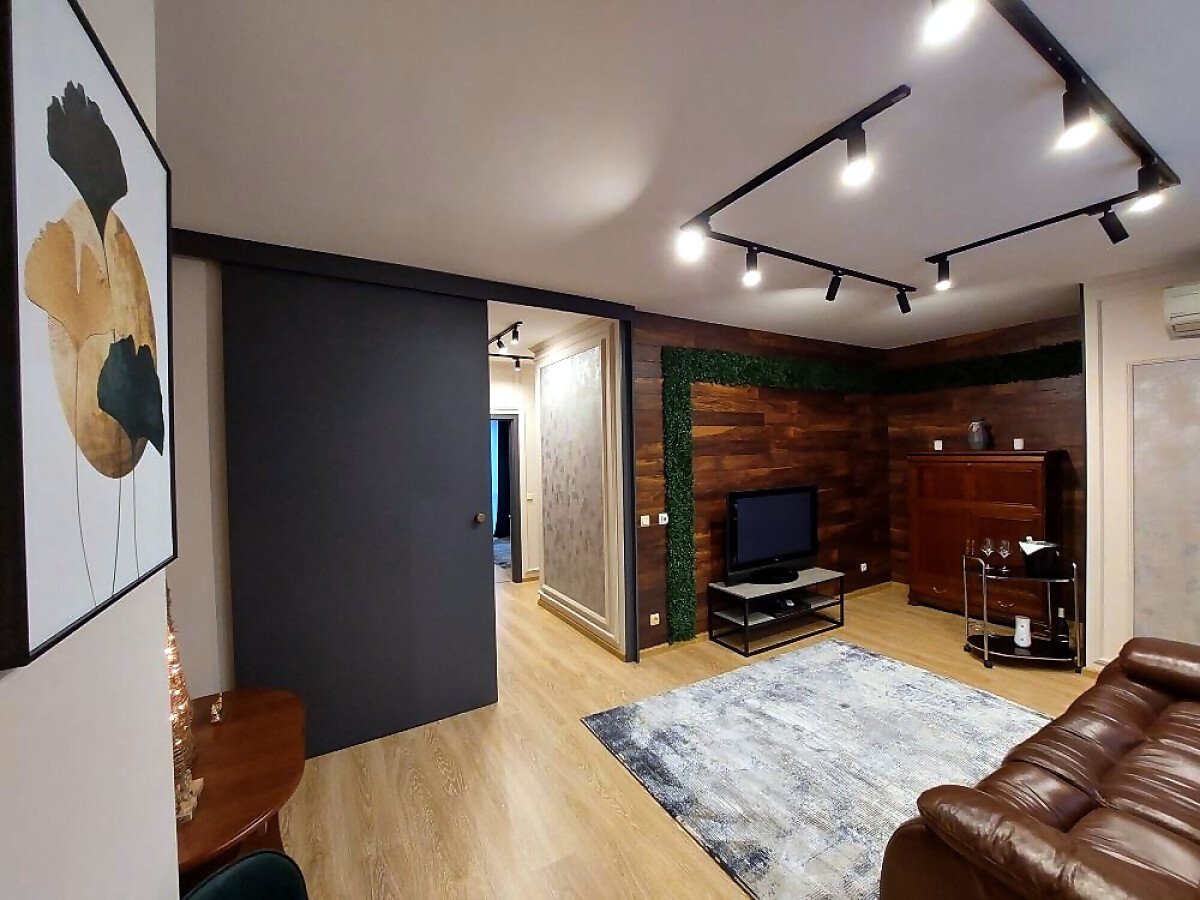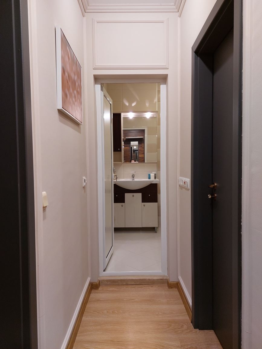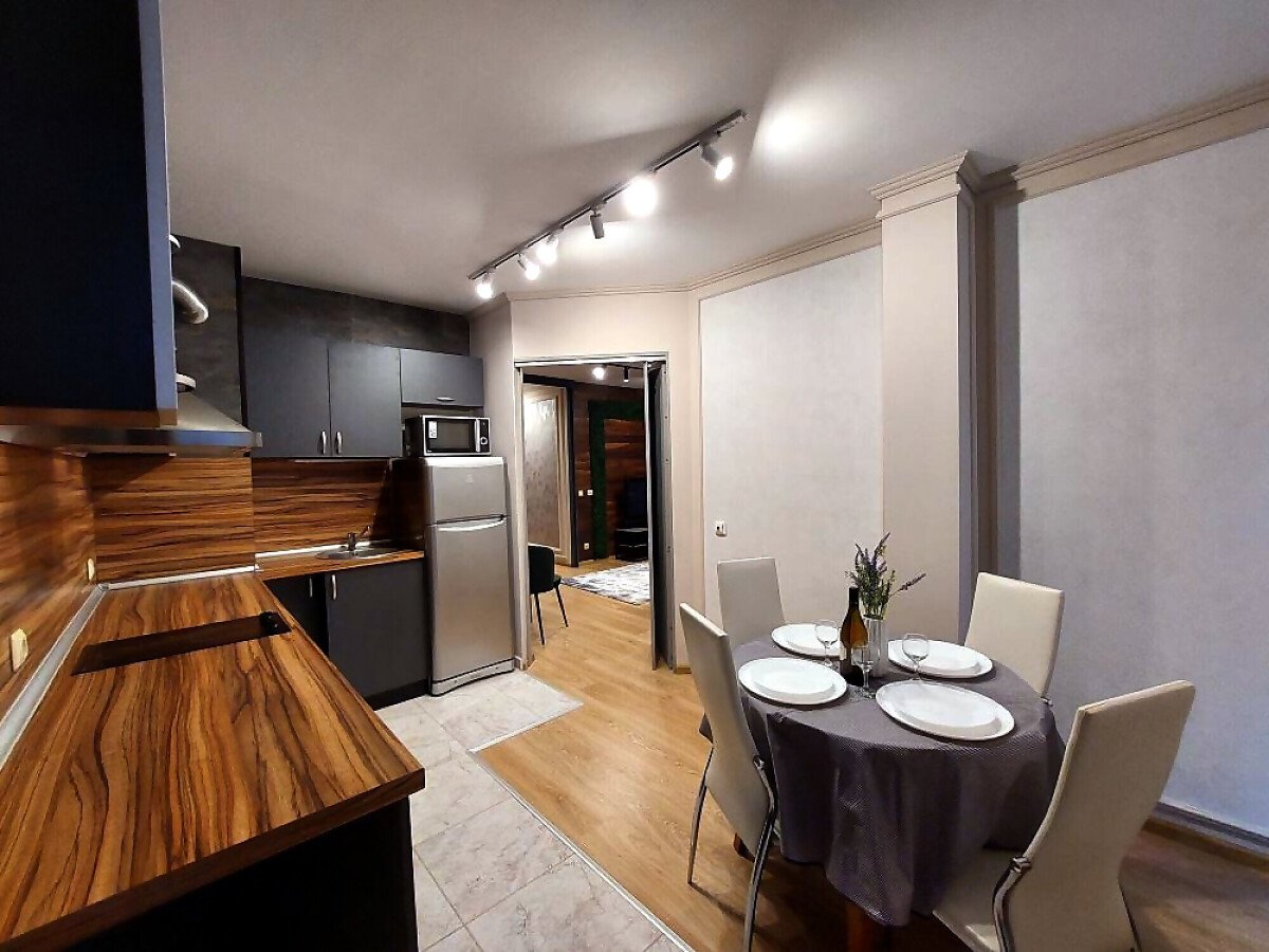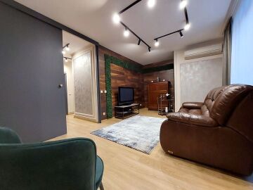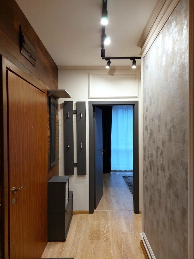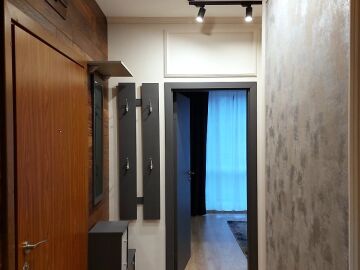 Апартаментът е просторен и много функционален. Състои се от входно антре, голям хол, отделна кухня с обособен кът за хранене, баня с тоалетна и душ кабина, спалня, мокро помещение и тераса. Има възможност да се преустрои в апартамент с две спални. Имотът е обзаведен с качествени и стилни мебели, оборудван с техника, готов за нанасяне. Има подово отопление, а в хола е монтиран климатик.