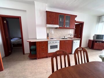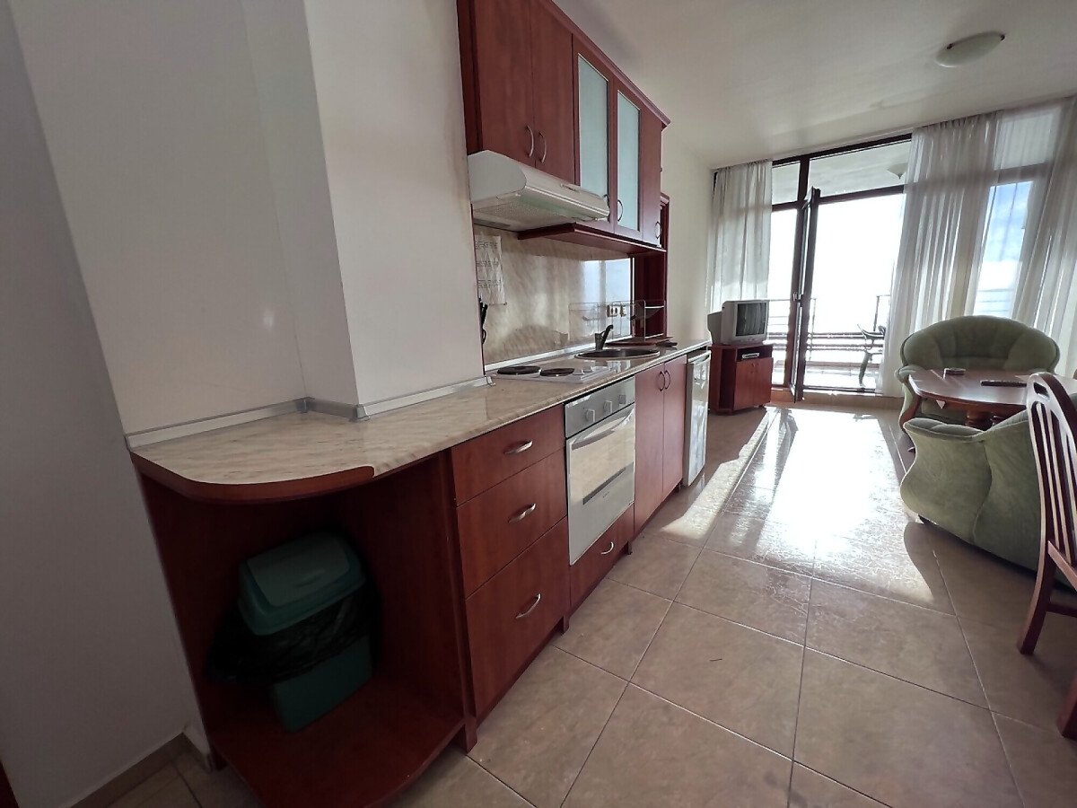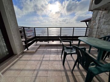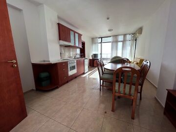 Апартаментът е светъл, просторен и много функционален. Състои се от всекидневна с обособен кът за хранене и кухненски бокс, малък коридор, две спални, две бани с тоалетни и тераса с невероятна панорамна гледка към морето. В една от баните има вана. Имотът се продава оборудван с необходимата домакинска техника, напълно обзаведен, готов за нанасяне.