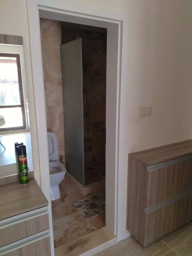 Първи етаж – голяма всекидневна с кухненски бокс, баня с тоалетна и душ кабина, спалня, самостоятелна веранда с изход към двора.