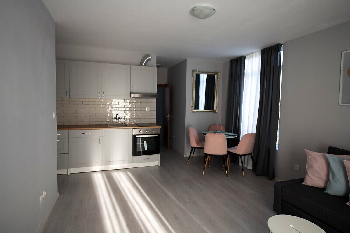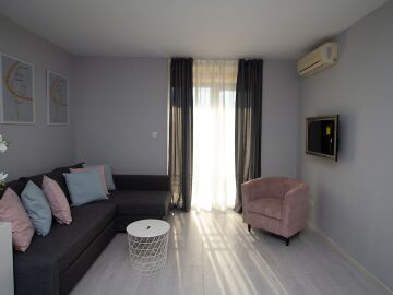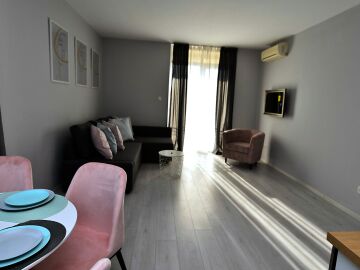 Локацията е отлична – в близост до централната част на курорта, където може да откриете разнообразие от магазини, ресторанти и кафенета, заведения, летни атракции. Това прави имотът подходящ както за лятна почивка и сезонно отдаване под наем, така и за постоянно живеене.