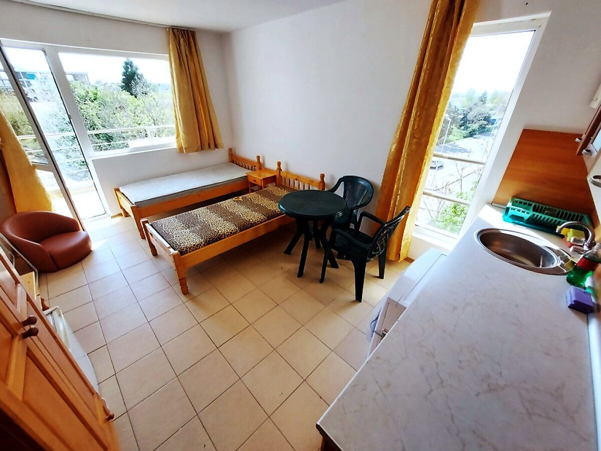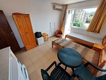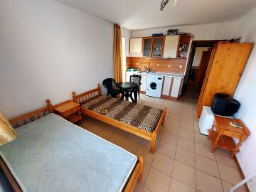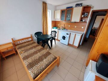 Локацията е отлична – в район с добре развита инфраструктура, само на 200 метра от централната пешеходна алея. Там може да откриете разнообразие от магазини, ресторанти и кафенета, аптека, заведения, нощни клубове, летни атракции. Това прави имотът много подходящ както за сезонно отдаване под наем и лятна почивка, така и за постоянно живеене.