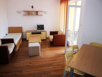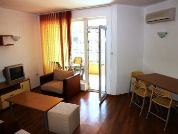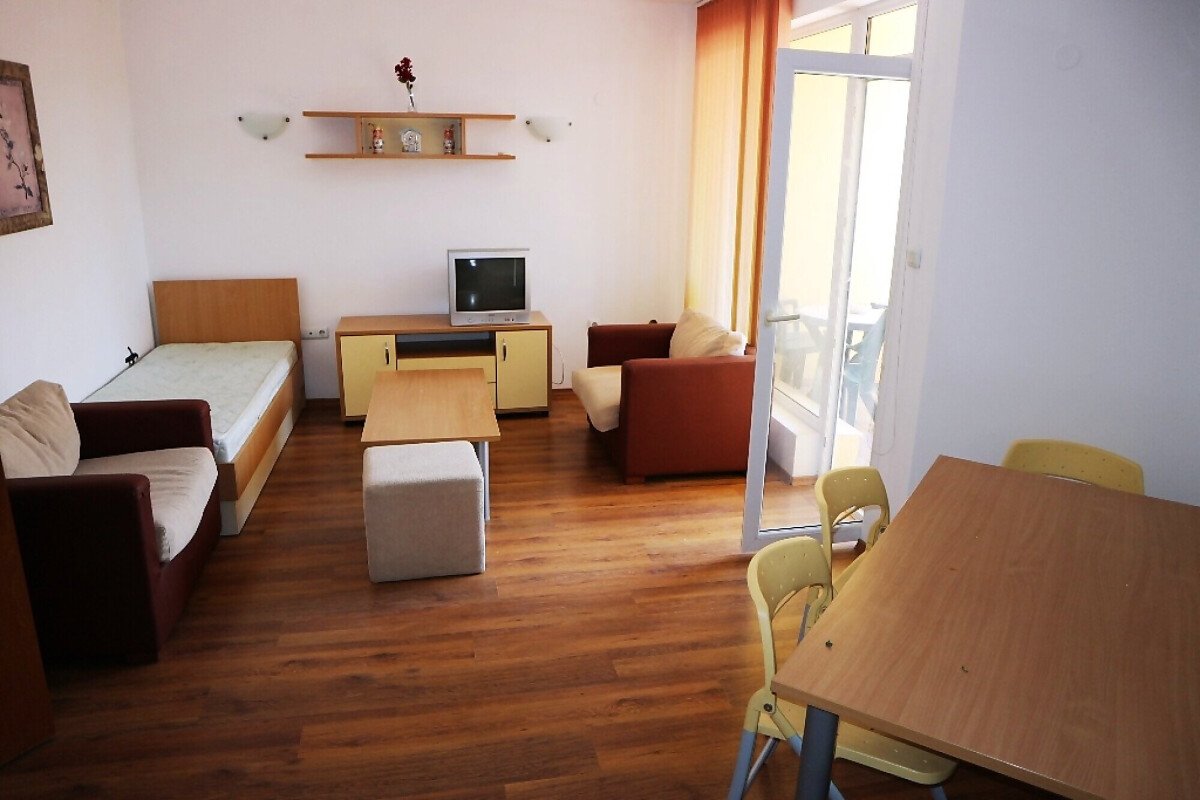 Предлагаме за продажба тристаен апартамент с гледка към басейн в комплекс „Sunny Home”, разположен в централната част на популярния курорт Слънчев бряг, на пешеходно разстояние от цялата инфраструктура. В близост има разнообразие от магазини, ресторанти и кафенета, плажни барове, нощни клубове. Това прави имотът много подходящ както за лятна почивка, така и за целогодишно живеене и отдаване под наем.
