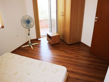 Апартаментът е просторен и функционален. Разположен е на четвърти жилищен етаж, като сградата разполага с асансьор. Състои се от входно антре, всекидневна с трапезария и кухненски бокс, две спални, баня с тоалетна и душ кабина, тераса с красива гледка към басейна. Продава се оборудван с необходимата домакинска техника, напълно обзаведен, в много добро състояние, готов за нанасяне. Годишната такса поддръжка е 250 евро.