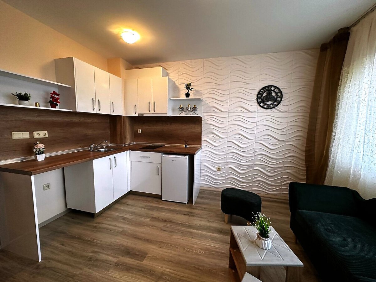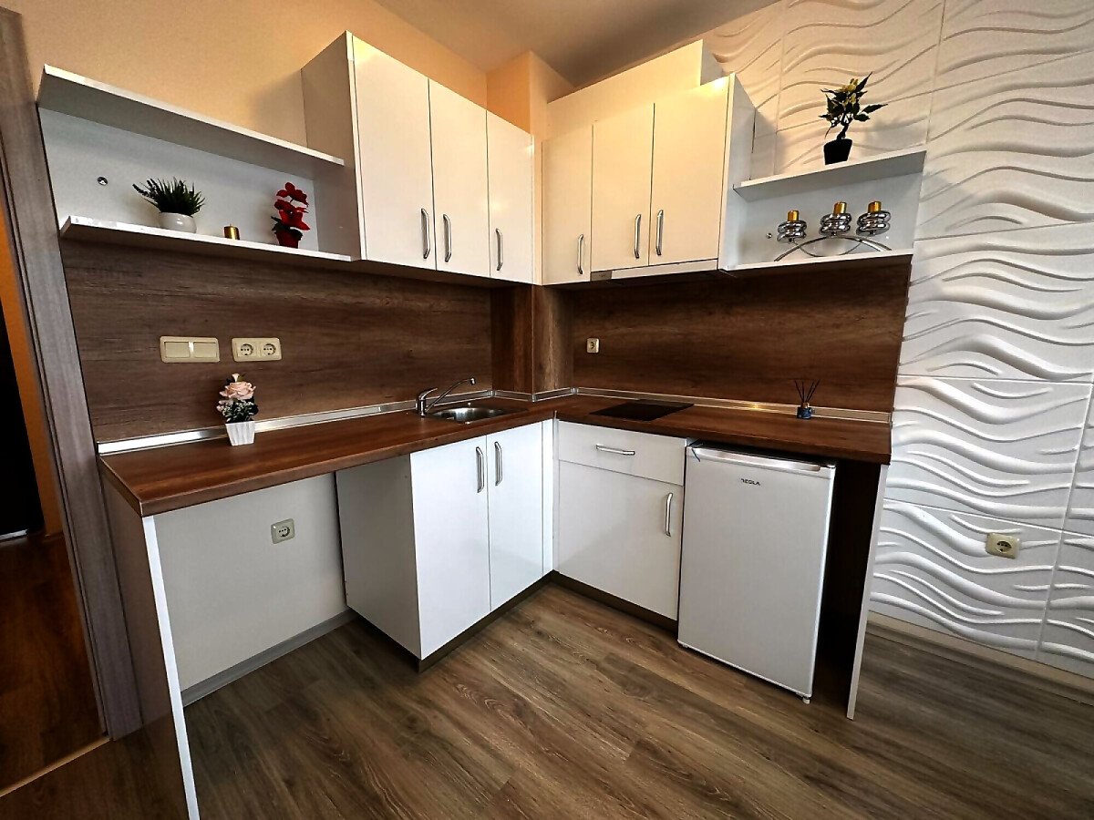 Предлагаме за продажба страхотен двустаен апартамент в комплекс „Аполон 9“, част от верига комплекси „Аполон“. Разположен е между град Несебър и курортното селище Равда, само на 350 метра пешеходно разстояние до морето и плажната ивица.