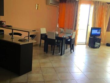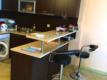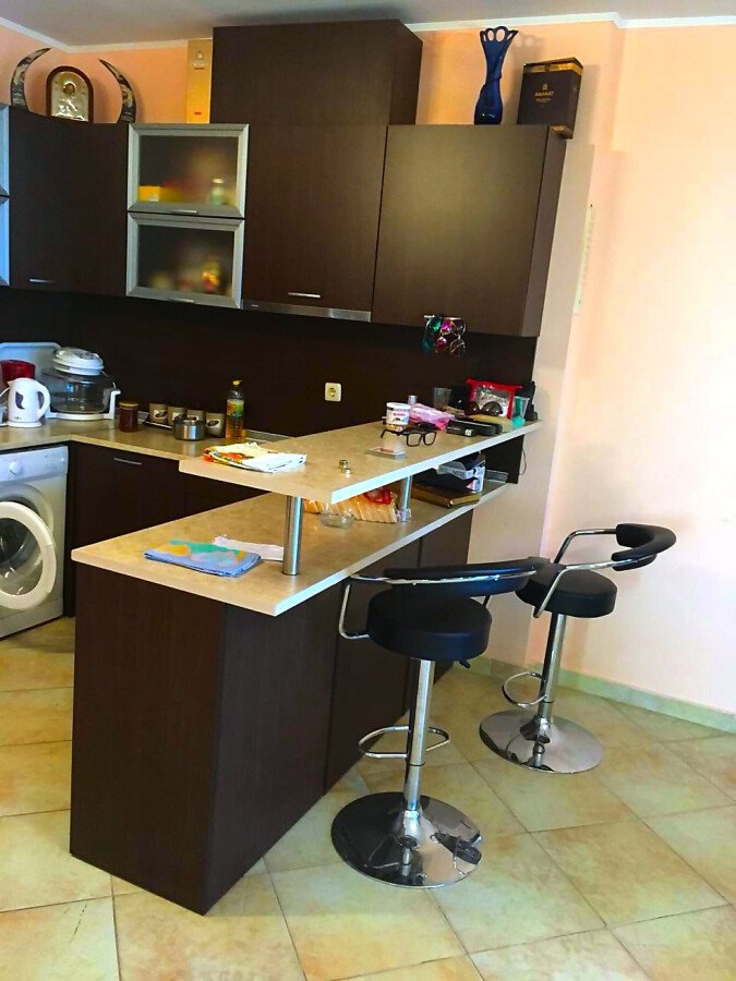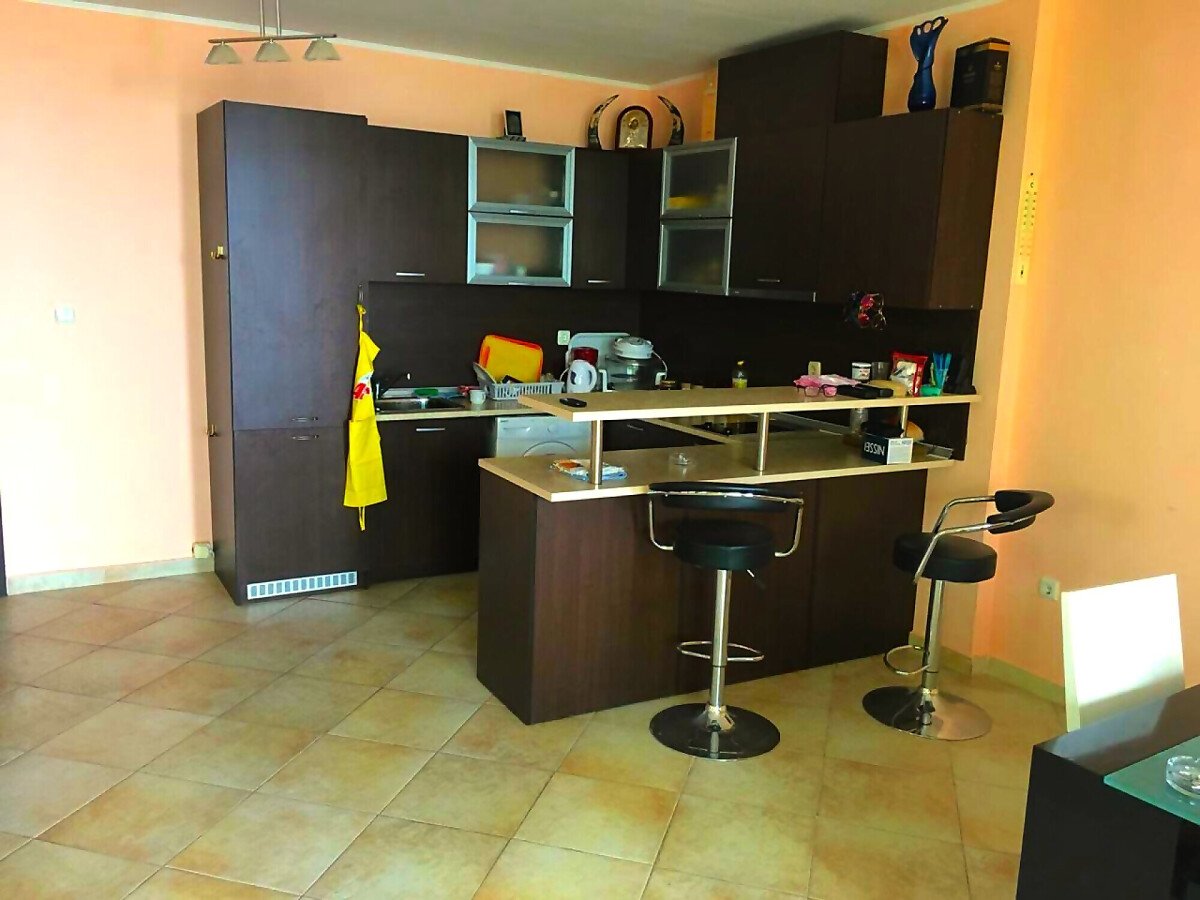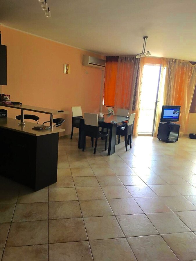 Апартаментът е много функционален. Състои се от входно антре, голяма всекидневна с трапезария и кухненски бокс, две спални, баня с тоалетна и душ кабина, тераса с прекрасна панорамна гледка към морето. Имотът е в чудесно състояние, оборудван с необходимата домакинска техника, напълно обзаведен, готов за нанасяне.