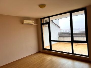 Апартаментът е разположен на четвърти, последен етаж. Състои се от две стаи, баня с тоалетна и душ кабина, две тераси. Имотът се продава без обзавеждане, което е чудесна възможност да го мебелирате според Вашия вкус и стил! Банята е напълно завършена и функционална. Една от терасите разкрива страхотна гледка към басейна и вътрешната част на комплекса.