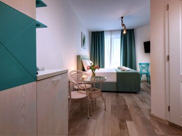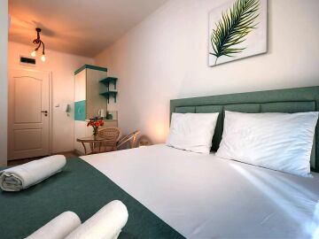 Апартаментът е разположен на втори етаж, с площ 30,76 кв.м. Състои се от всекидневна с кухненски бокс, баня с тоалетна, тераса. Продава се в чудесно състояние, напълно обзаведен със стилни и качествени мебели, оборудван с необходимата домакинска техника, готов за нанасяне. Годишната такса поддръжка на студиото е 523 евро.