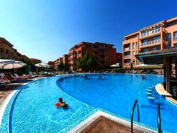 Комплексът на територията си разполага с пет големи басейна с място за деца, красива озеленена градина, голям тенис корт и футболно игрище, детска площадка и паркинг.
