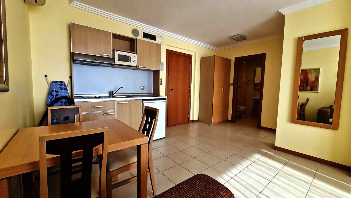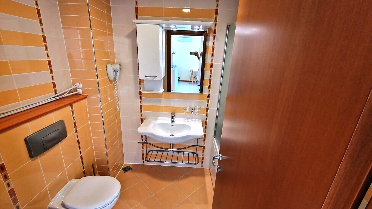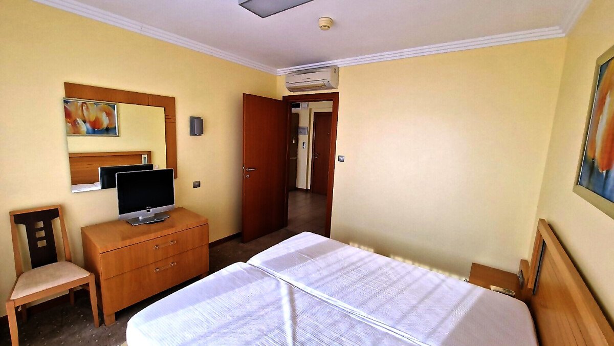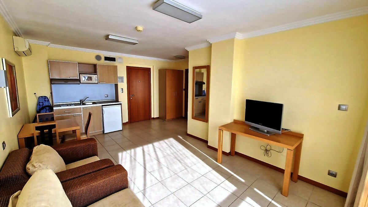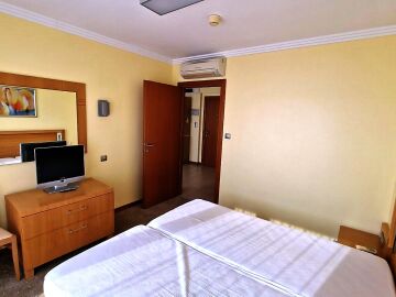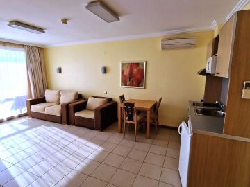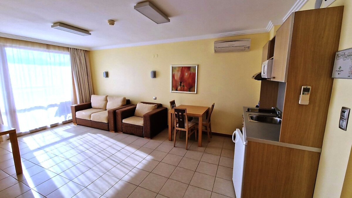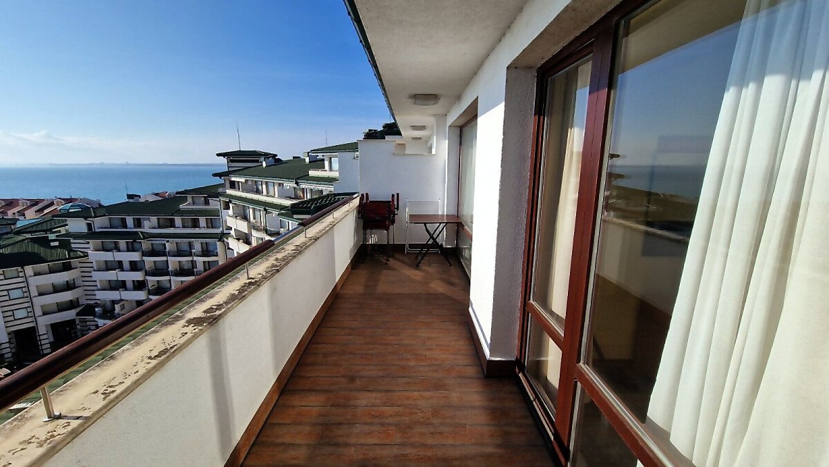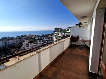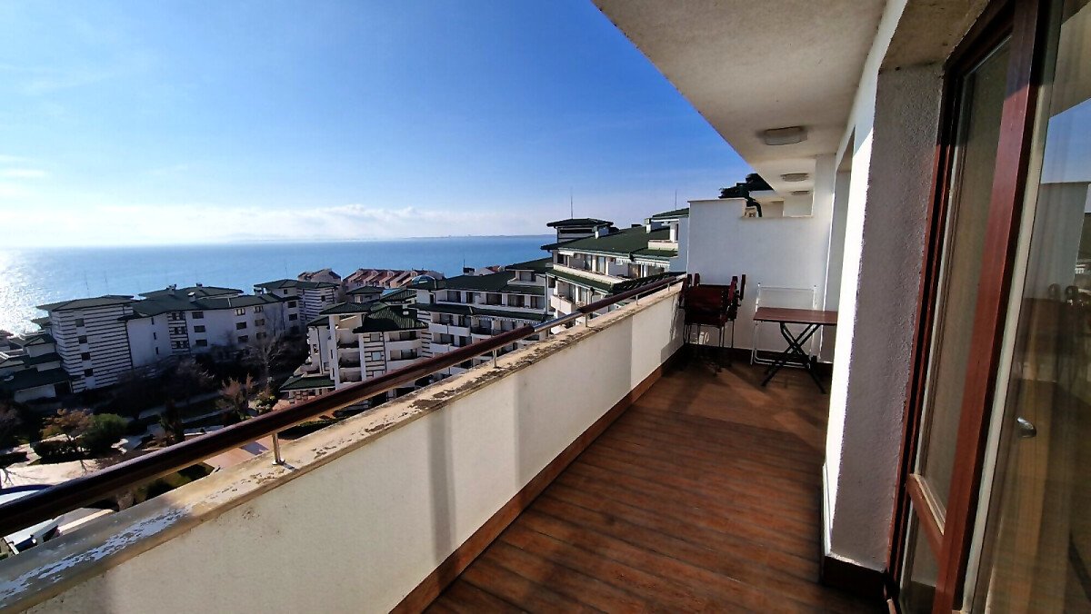 Апартаментът е просторен и светъл. Състои се от голяма всекидневна с кухненски бокс, спалня, баня с тоалетна и вана, тераса с прекрасна панорамна гледка към морето. И от двете стаи има изход към балкона. Продава се оборудван с необходимата домакинска техника, напълно обзаведен, в много добро състояние, готов за нанасяне.
