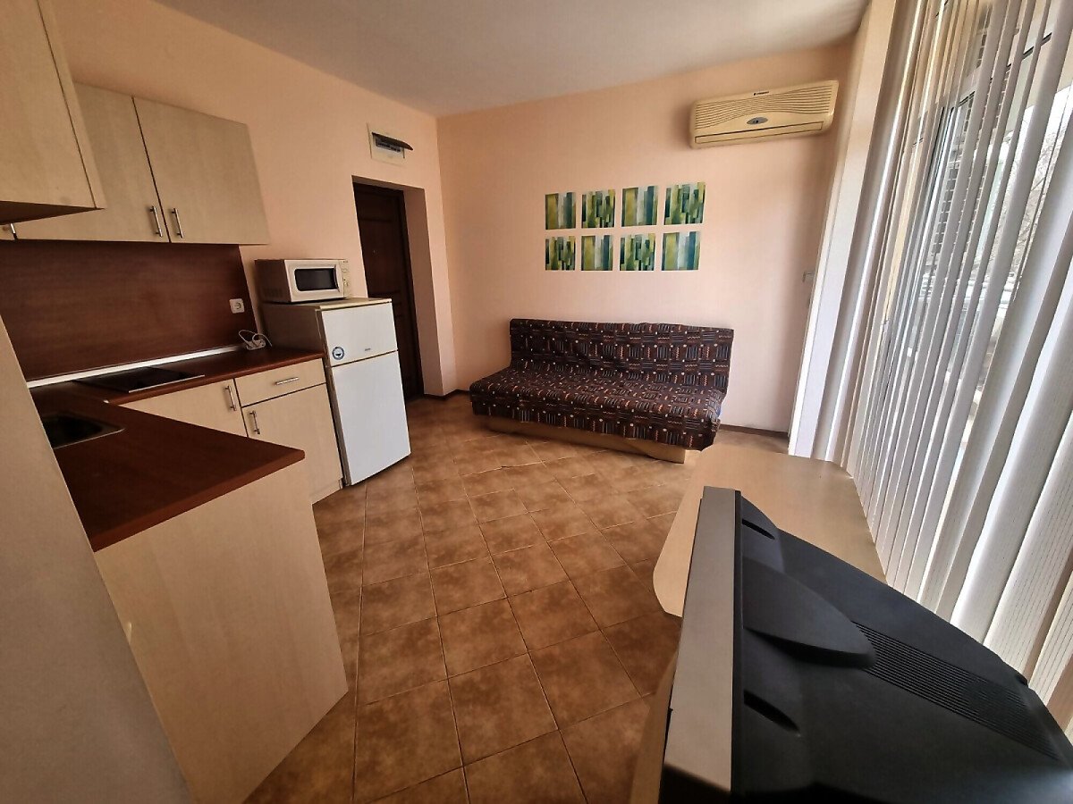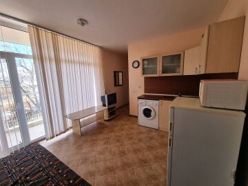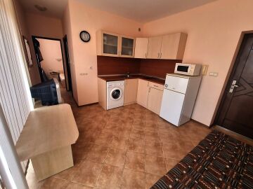 Апартаментът е компактен и функционален, със следното разпределение – всекидневна с кухненски бокс, баня с тоалетна, спалня, тераса. Продава се оборудван с необходимата домакинска електротехника, напълно обзаведен, готов за нанасяне.