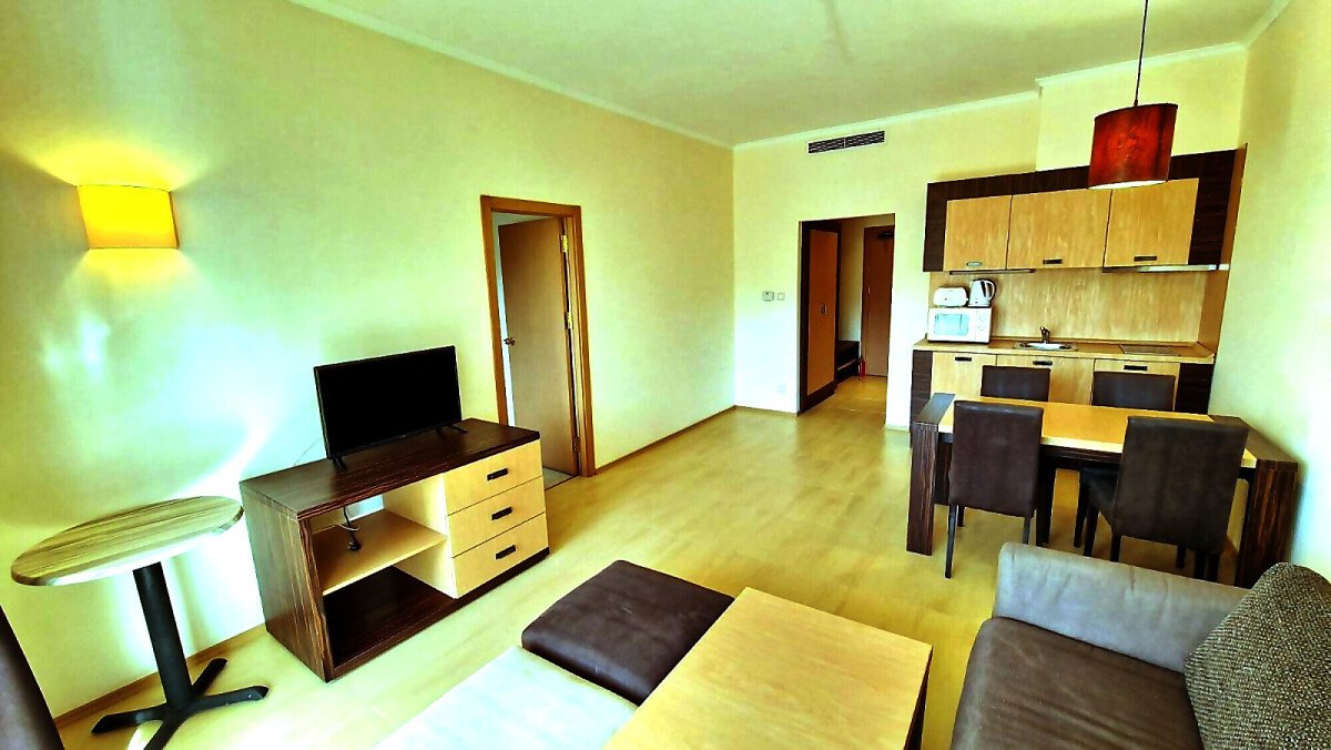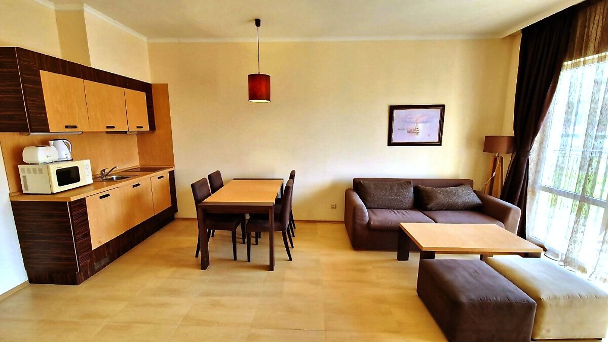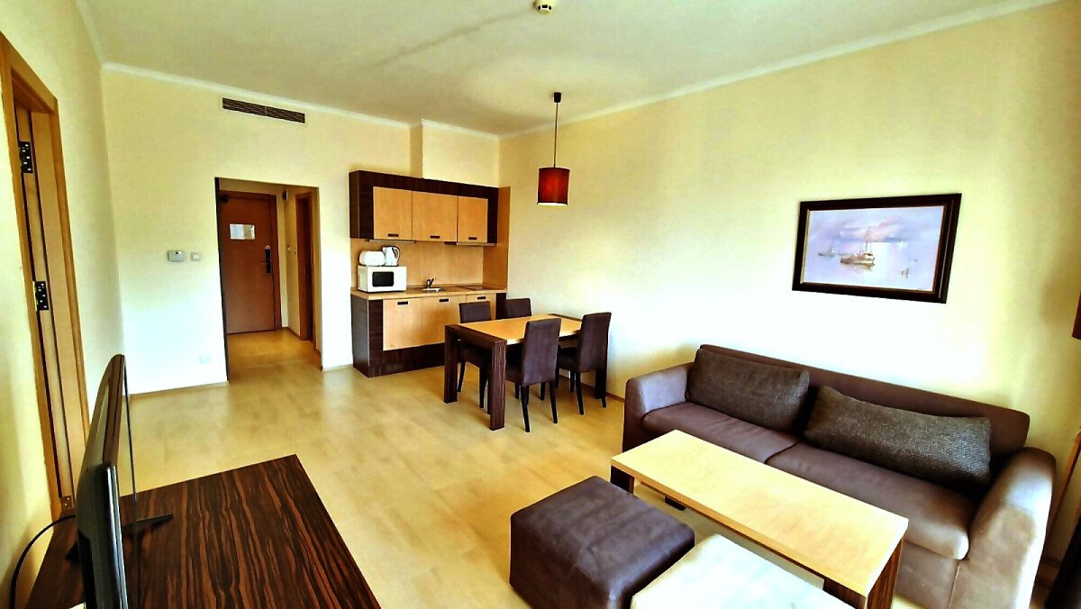 Предлагаме за продажба чудесен двустаен апартамент в комплекс „Маджестик Бийч Резорт“, разположен в летния популярен курорт Слънчев бряг.