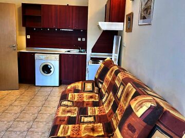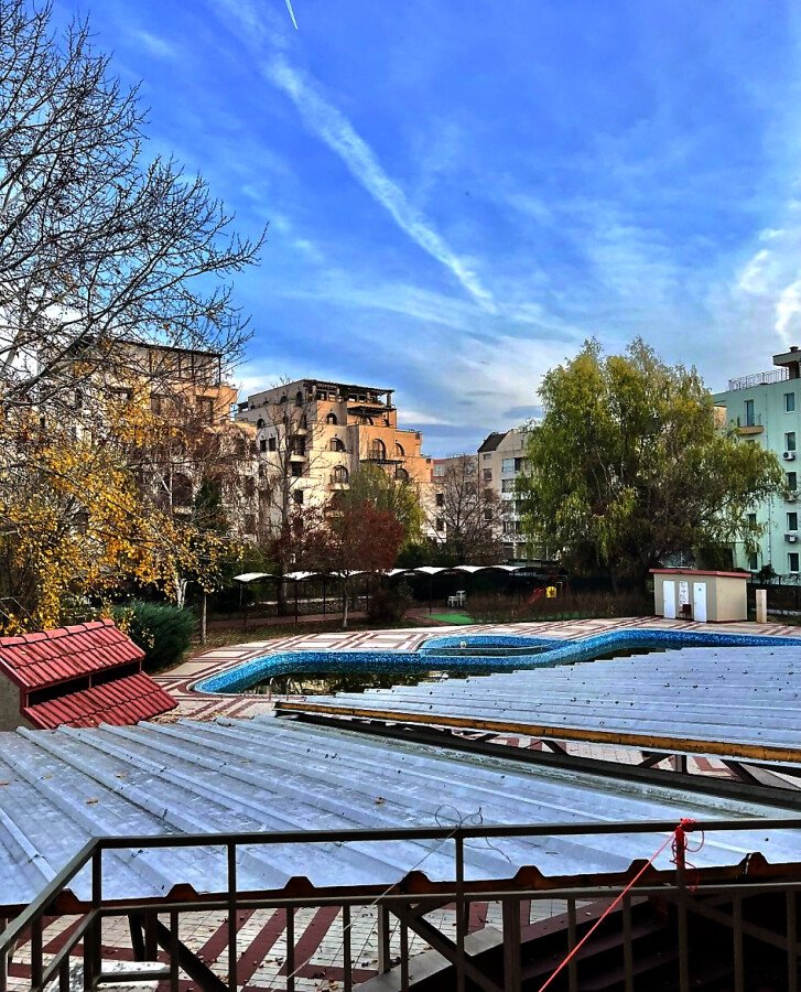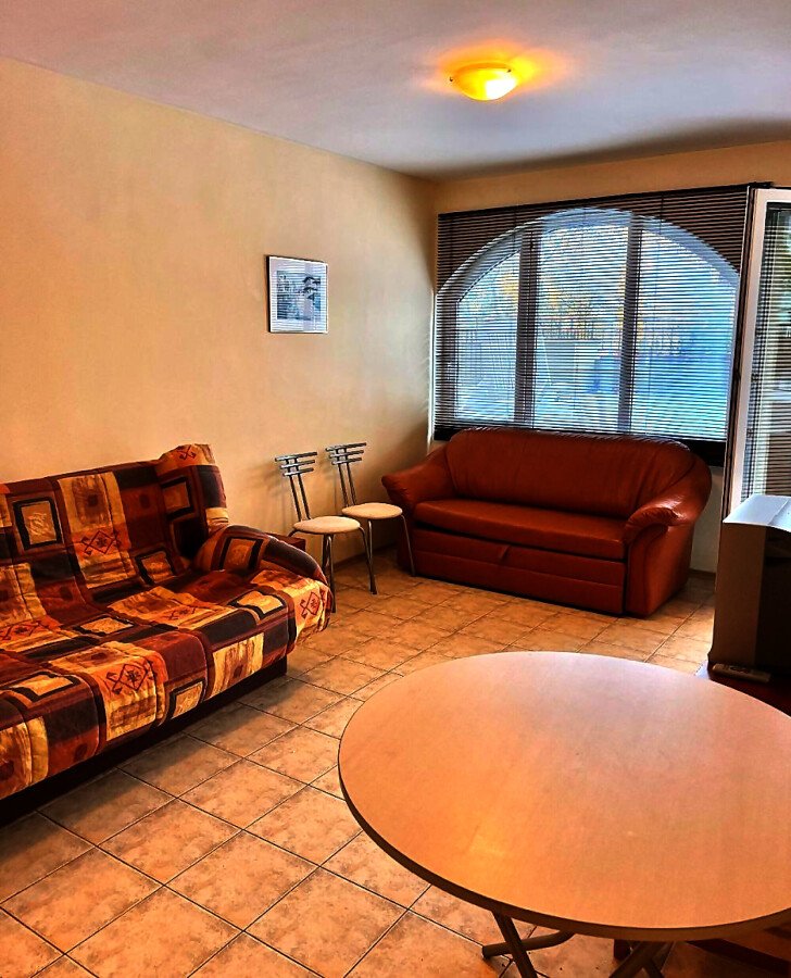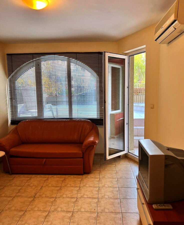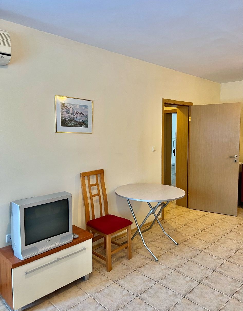 Апартаментът е разположен на партерен етаж и има следното разпределение – всекидневна с кухненски бокс, спалня, баня с тоалетна и вана, изход към тераса с гледка към басейна. Продава се с обзавеждане и техника, в много добро състояние, готов за нанасяне.