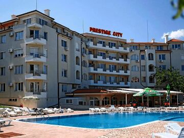 Предлагаме за продажба двустаен апартамент в комплекс „Престиж Сити 1“, разположен в тихата, югозападна част на един от най-предпочитаните курорти на българското крайбрежие – Слънчев бряг. Комплексът е построен в средиземноморски стил. Местоположението му е отлично – на 300 метра от морето и плажната ивица, и на 250 метра от централната част на курорта. Там може да откриете разнообразие от магазини, ресторанти и кафенета, заведения, летни атракции. Благодарение на това имотът, който Ви предлагаме, е много подходящ за постоянно живеене и отдаване под наем.