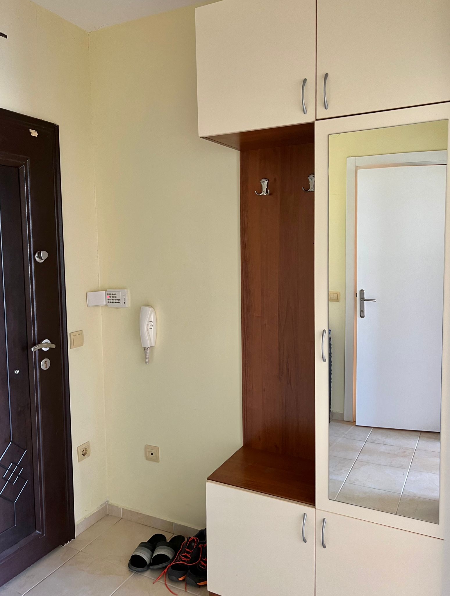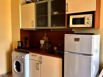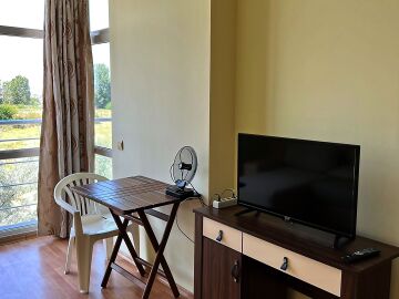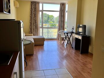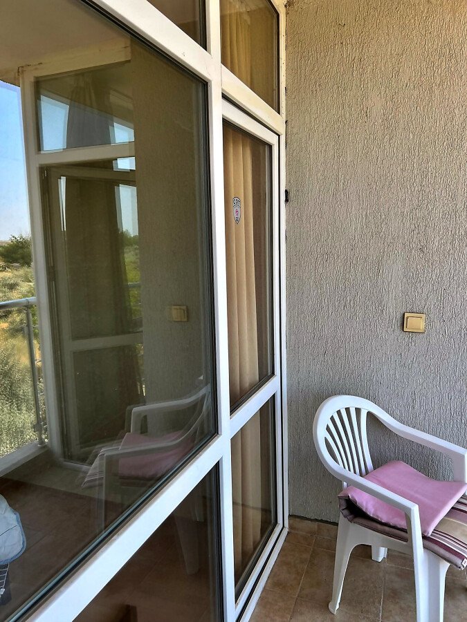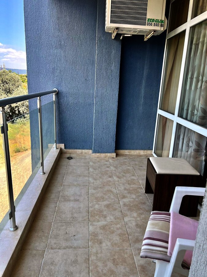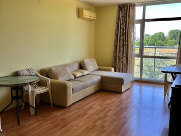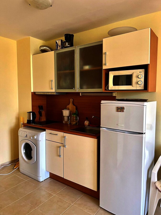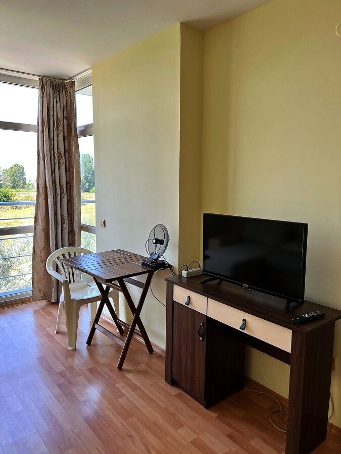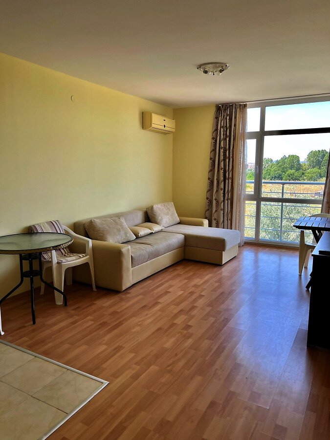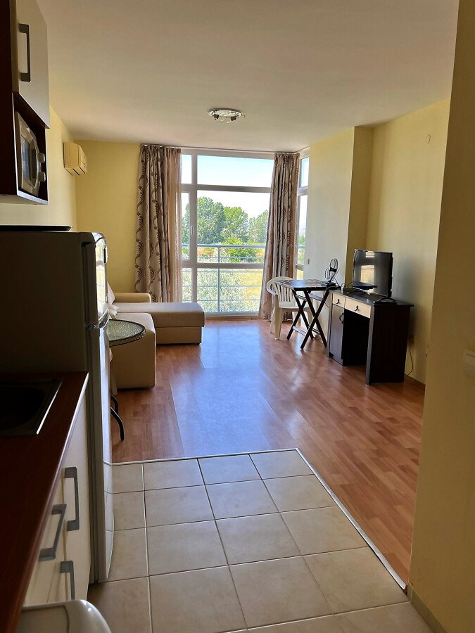 Апартаментът е светъл, уютен и функционален. Състои се от входно антре, всекидневна с кухненски бокс, баня с тоалетна и душ кабина, спалня, тераса. Продава се в отлично състояние, оборудван с техника, напълно обзаведен с хубави мебели, готов за нанасяне. Годишната такса поддръжка на имота е 360 евро.