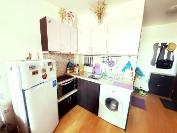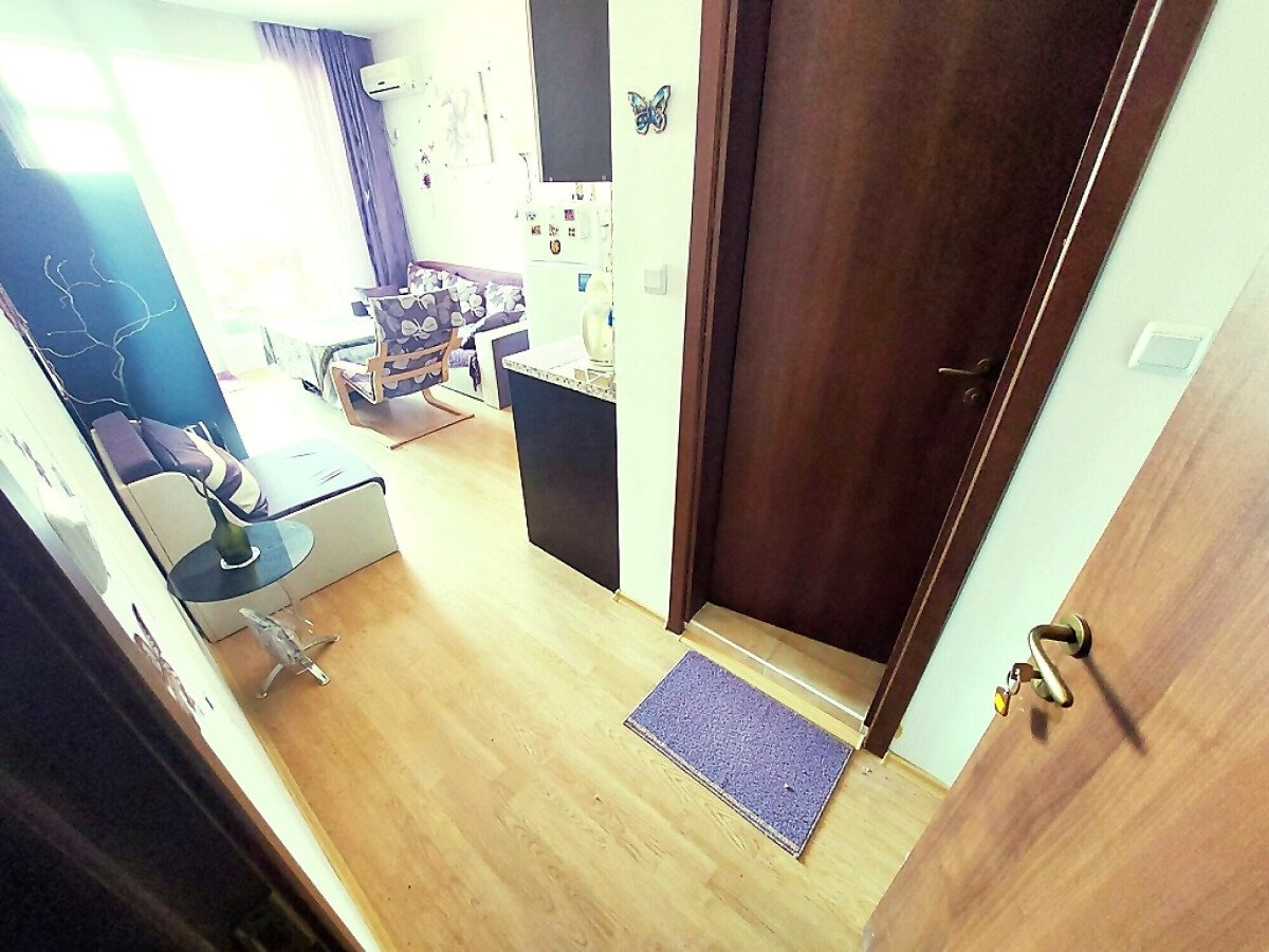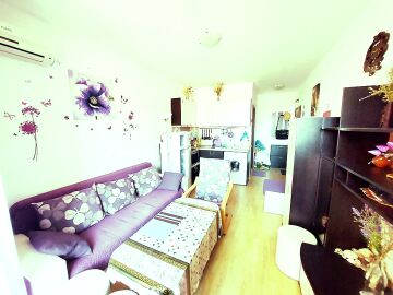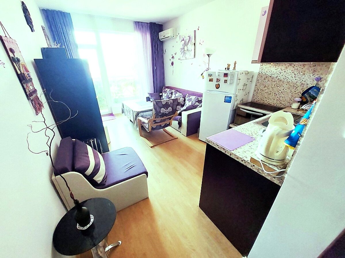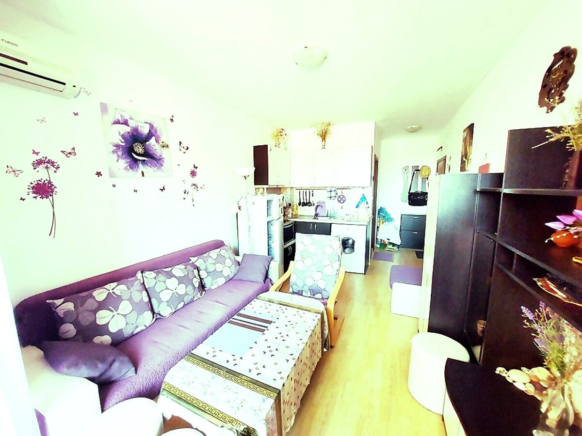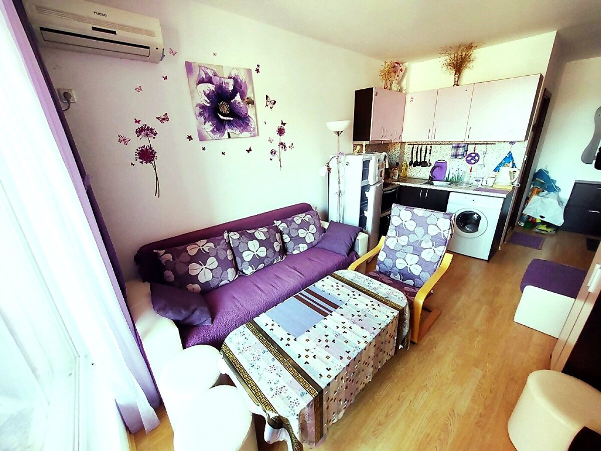 Студиото, което предлагаме, е напълно обзаведено и оборудвано с домакинска техника. Състои се от входно антре, всекидневна с кухненски бокс, баня с тоалетна, тераса с гледка към градината.