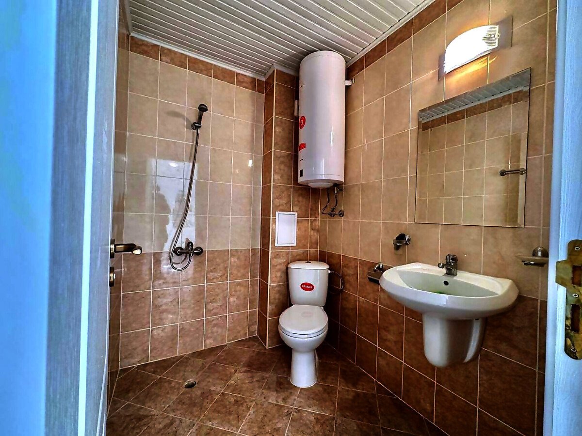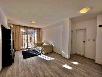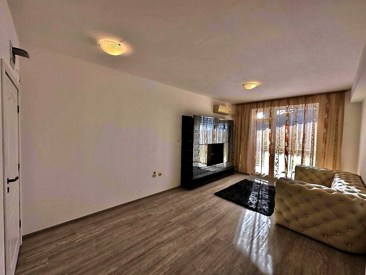 Апартаментът е след направен ремонт, частично обзаведен. Състои се от голяма всекидневна, спалня, баня с тоалетна, тераса с гледка към басейна. Годишната такса поддръжка на този имот е 580 евро.