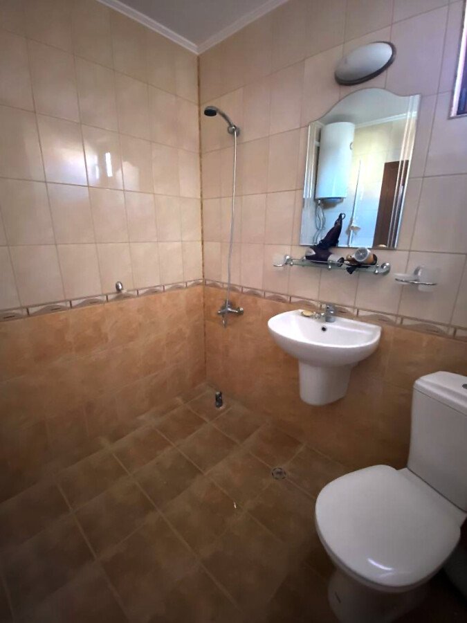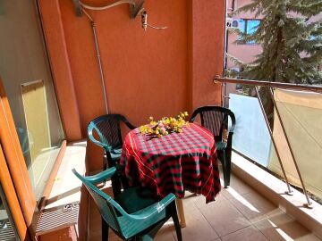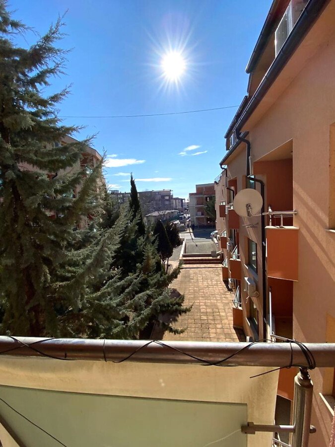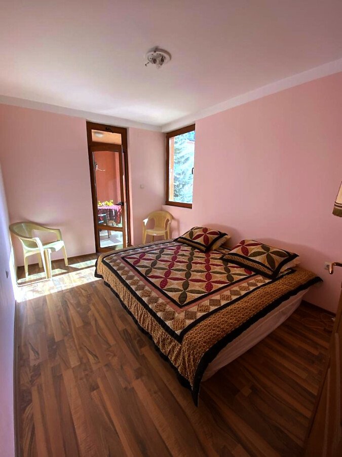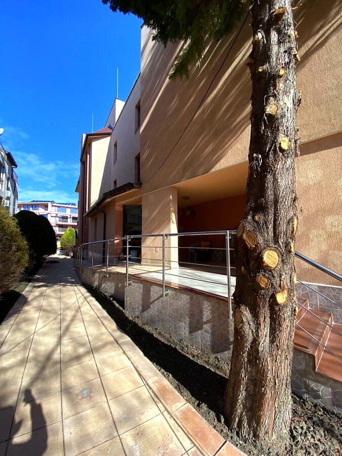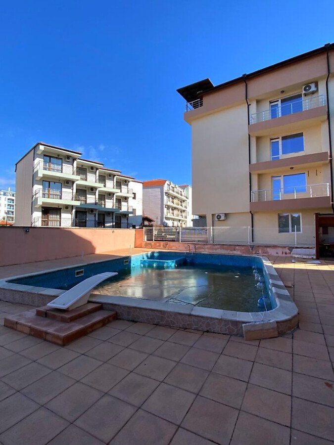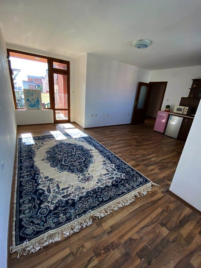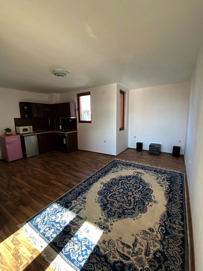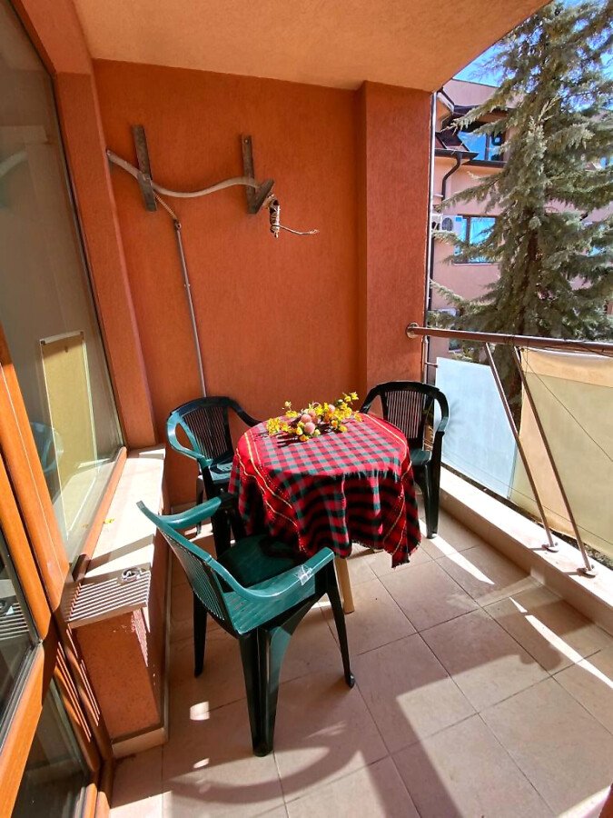Апартаментът е просторен, слънчев и функционален. Състои се от входно антре, голяма всекидневна с кухненски бокс, спалня, баня с тоалетна, тераса с гледка към вътрешната част на комплекса. Продава се частично обзаведен, като кухненският бокс е напълно оборудван, а спалнята обзаведена. Разположен е на трети етаж, като сградата разполага с асансьор. Годишната такса поддръжка за този комплекс е 400 евро.