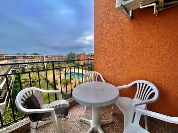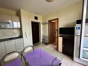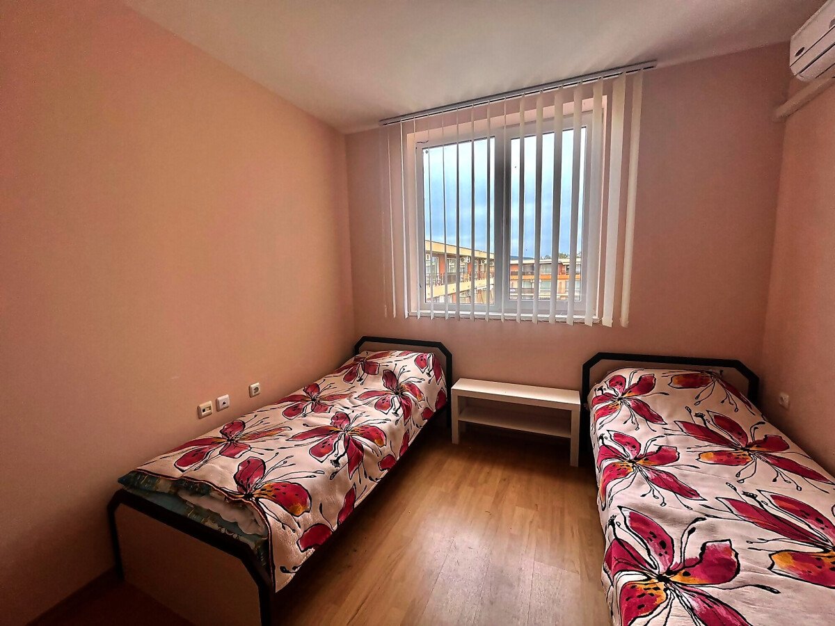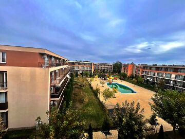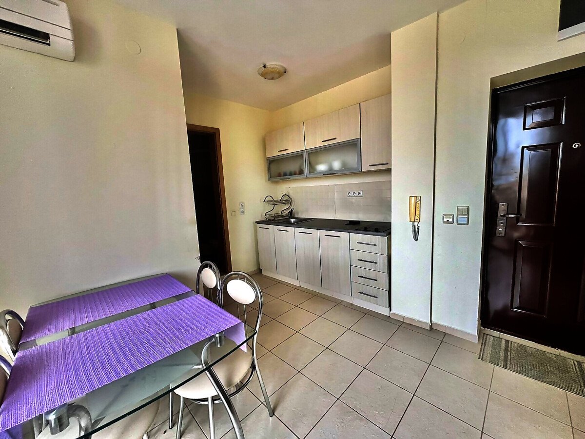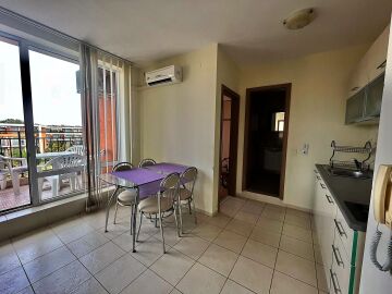 Предлагаме за продажба малък тристаен апартамент в комплекс „Форт Нокс“, разположен в морския курорт Слънчев бряг, на 900 метра от пясъчната плажна ивица.
