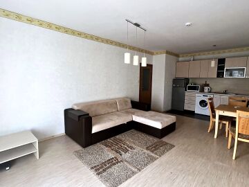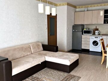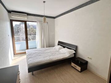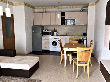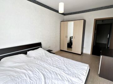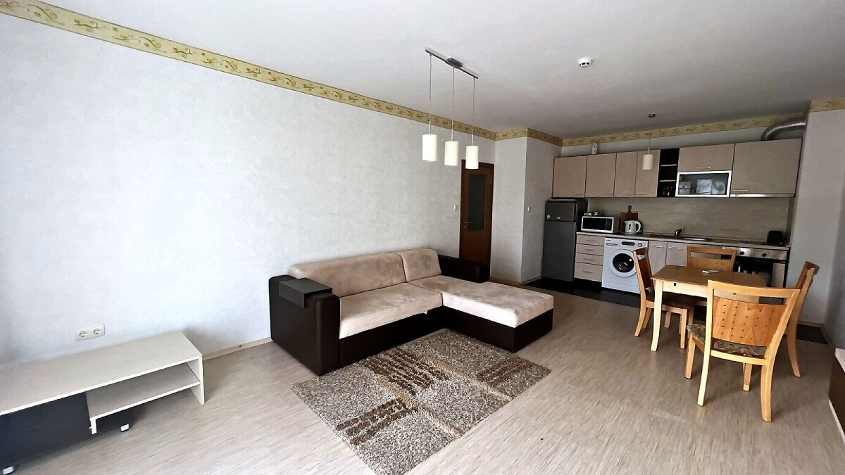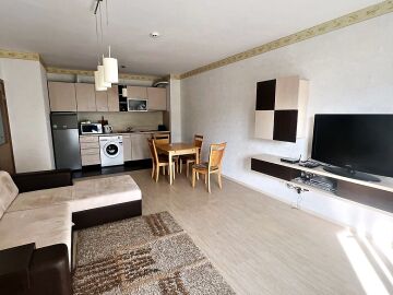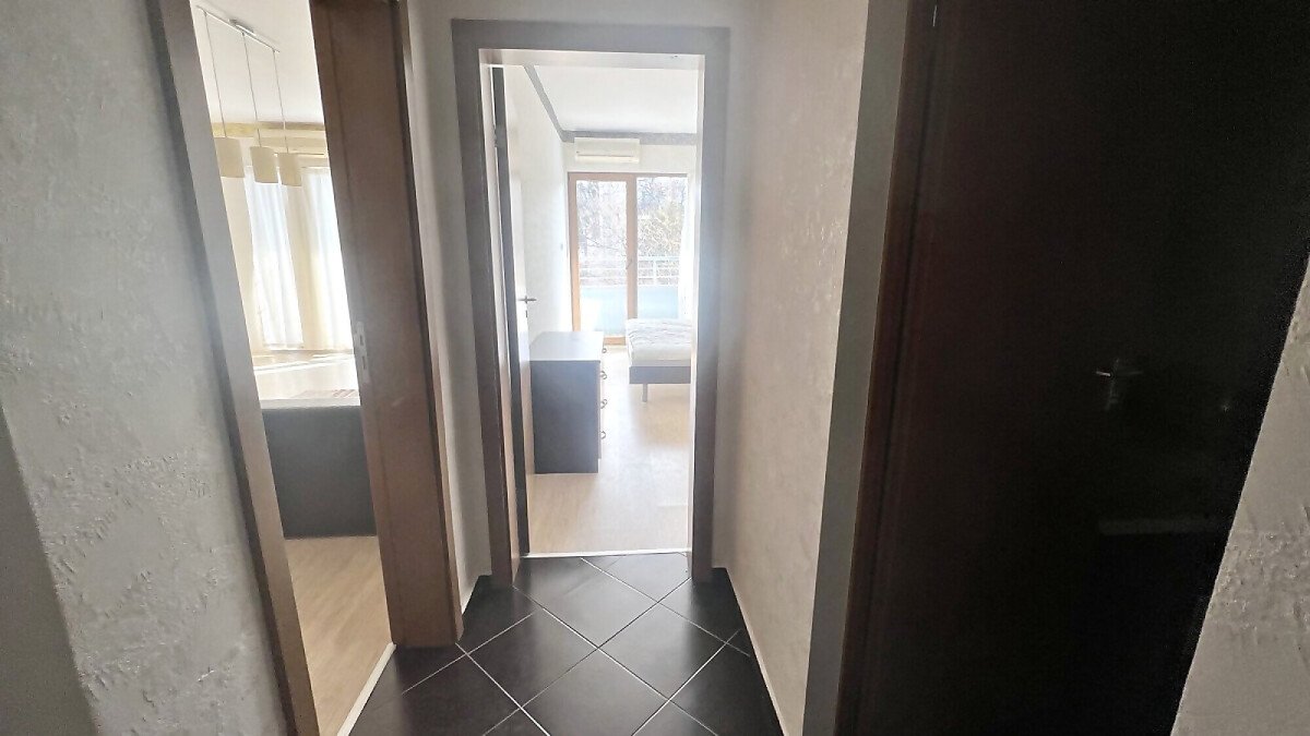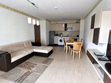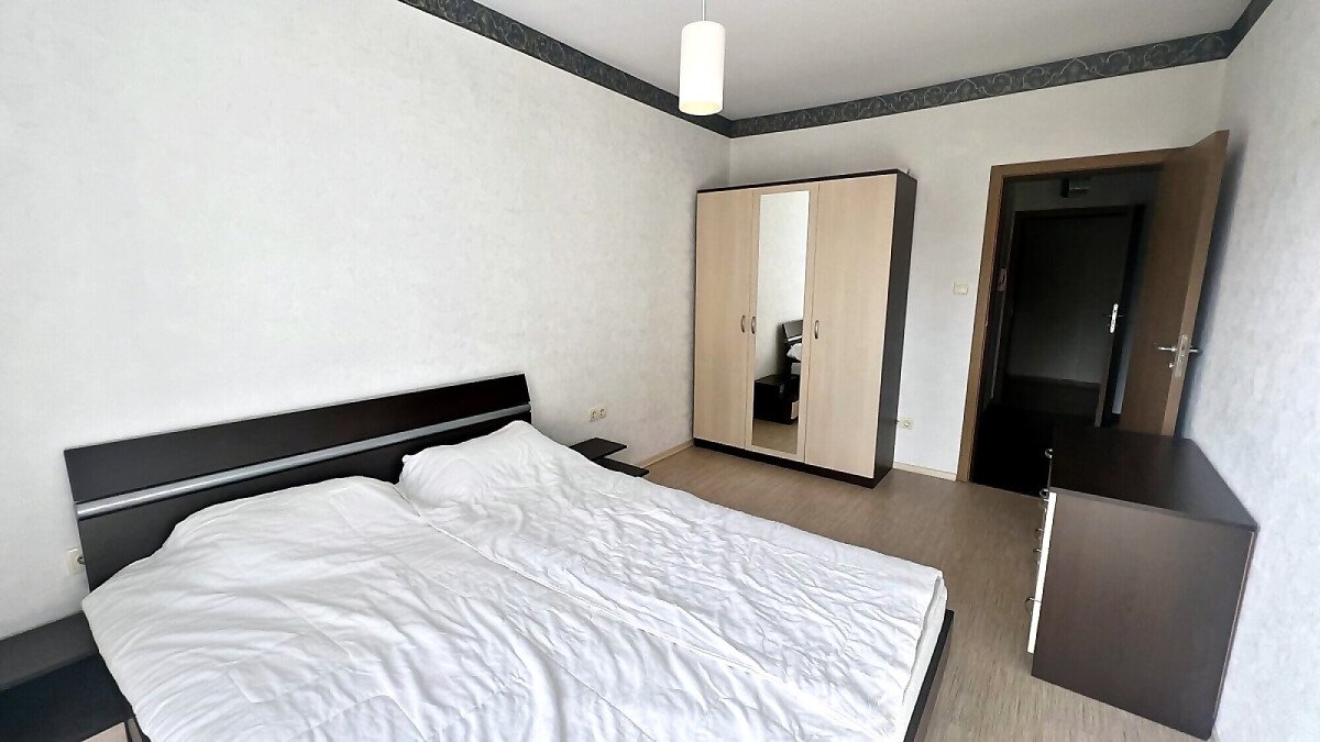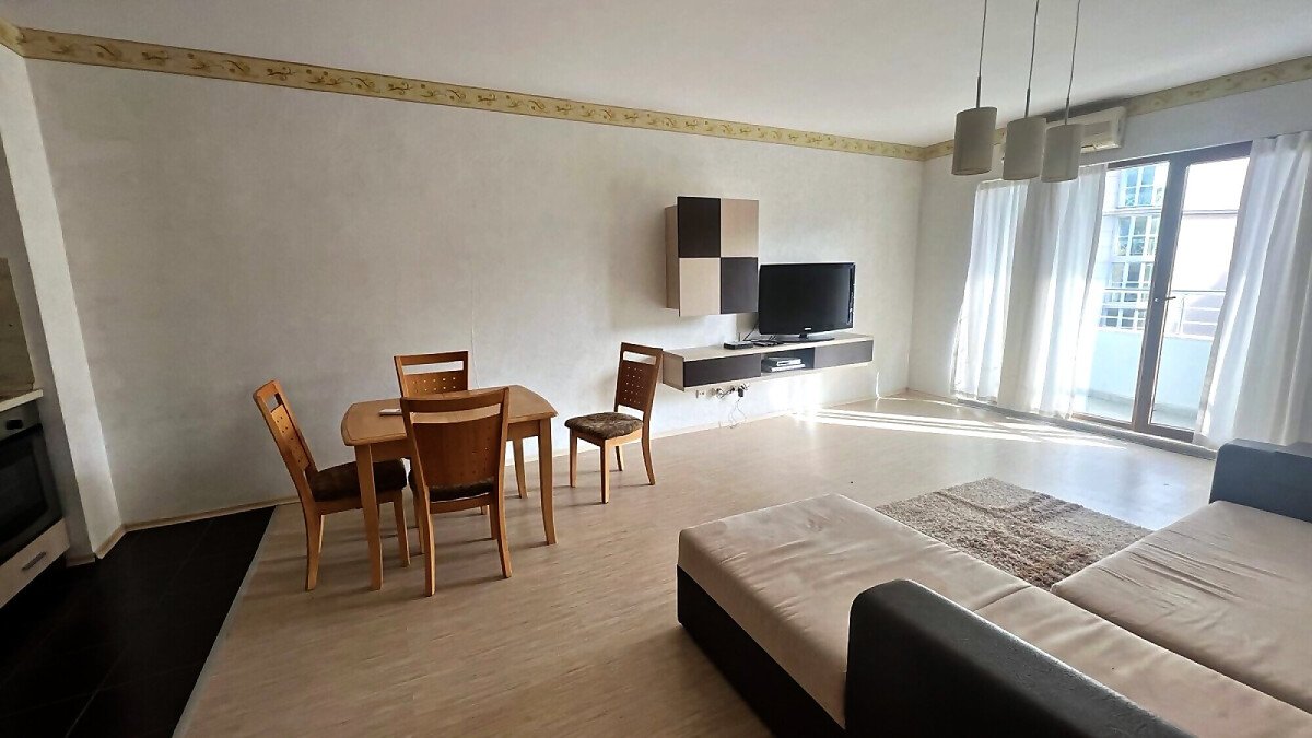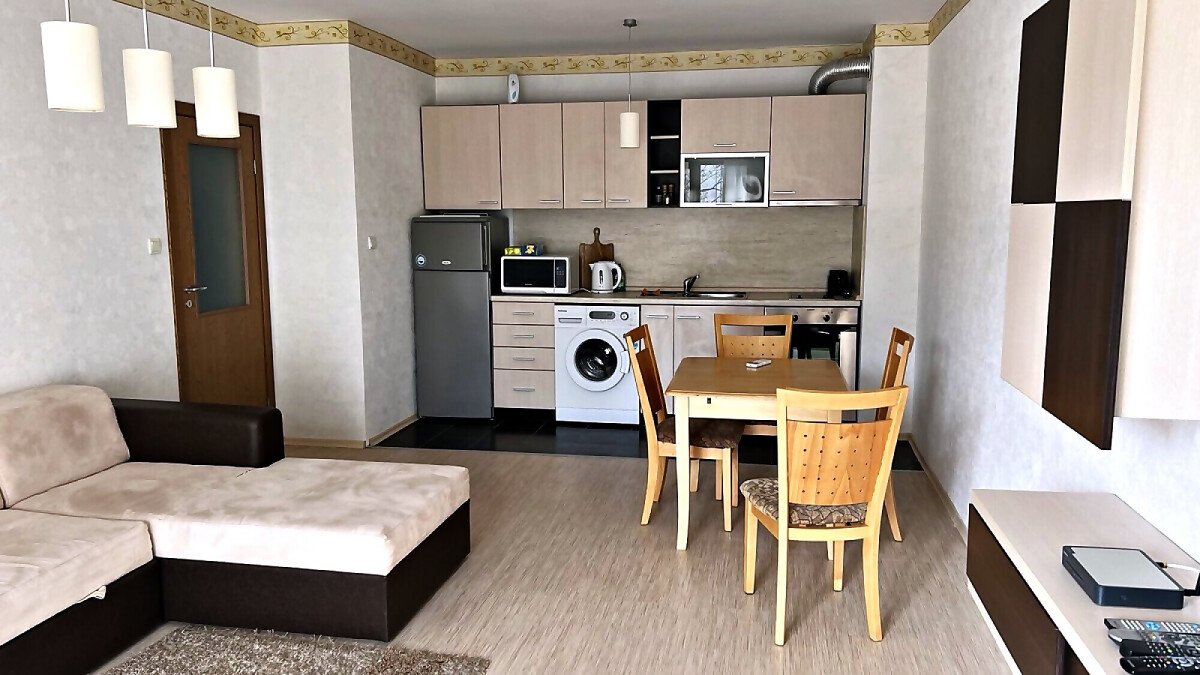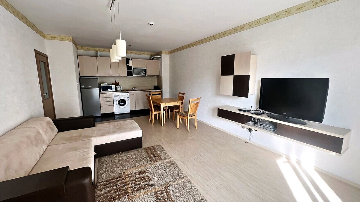 Апартаментът е светъл и просторен, със следното разпределение – входно антре, голяма всекидневна с кухненски бокс и обособен кът за хранене, спалня, баня с тоалетна и вана, тераса. Продава се напълно оборудван с необходимата домакинска електротехника, обзаведен с хубави мебели, в много добро състояние, готов за нанасяне.