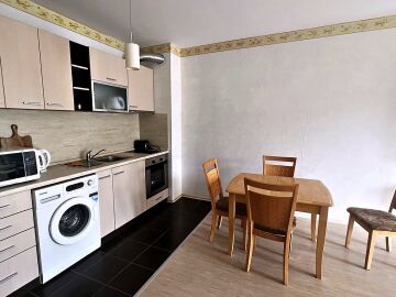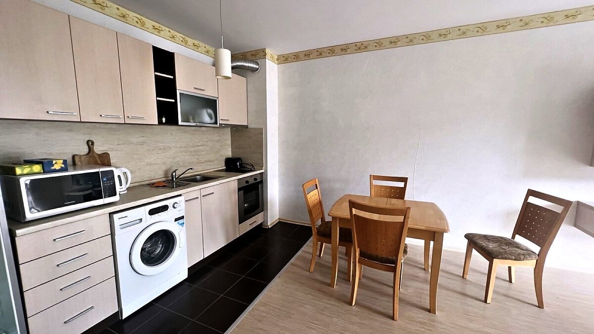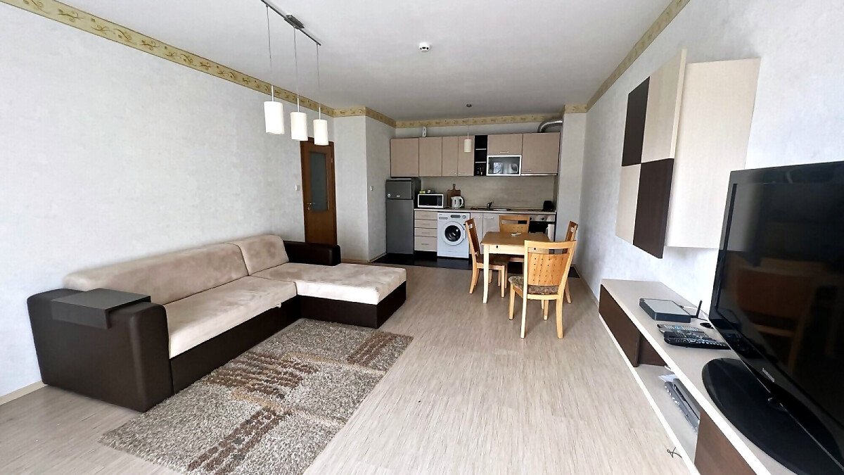 Предлагаме ви за продажба голям двустаен апартамент в комплекс „Кубан“, разположен в централната част на морския курорт Слънчев бряг, само на 150 метра пешеходно разстояние от пясъчната ивица и морето. В непосредствена близост може да откриете и да се насладите на разнообразие от магазини, ресторанти и кафенета, плажни барове, нощни клубове. Това прави имотът идеален както за лятна почивка и отдаване под наем, така и за целогодишно ползване.