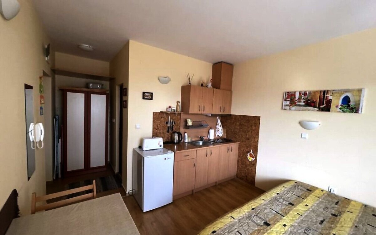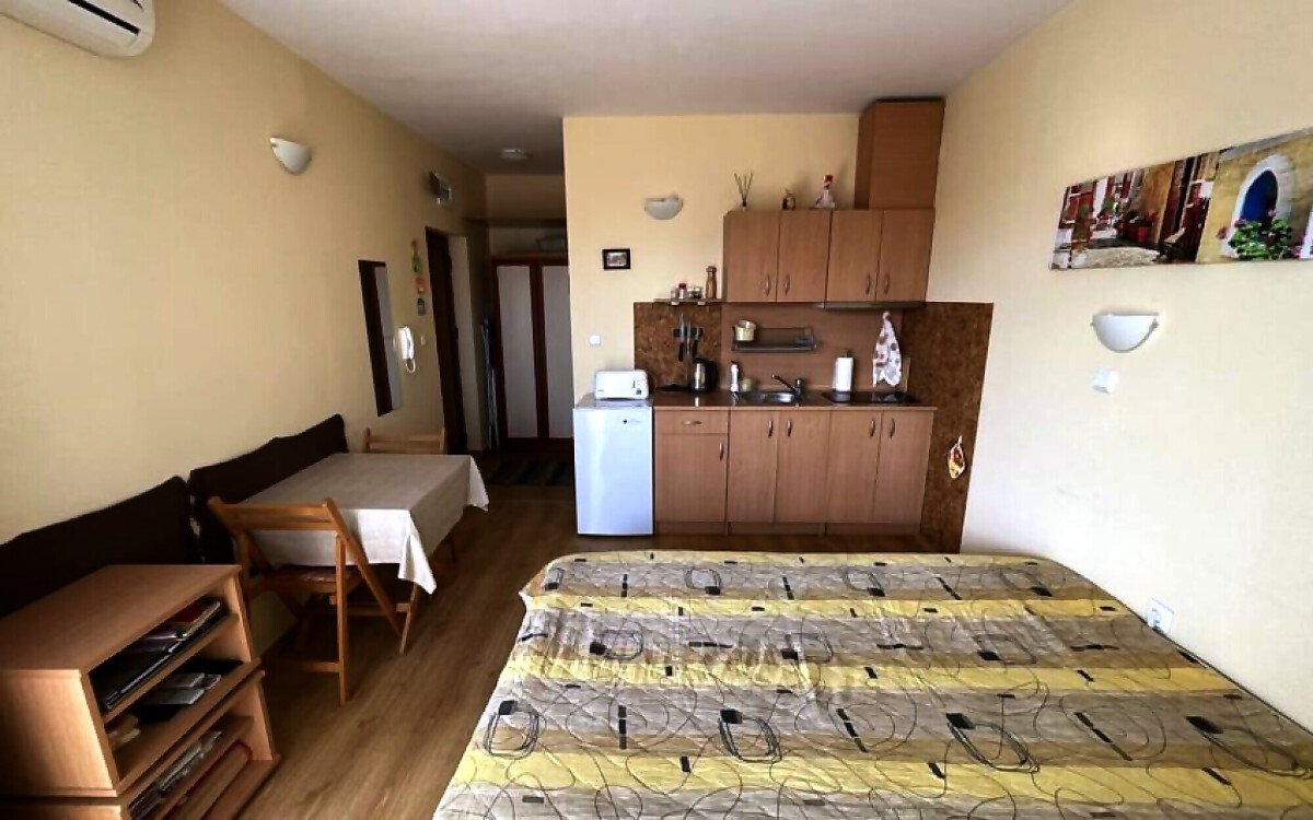 Предлагаме за продажба компактно и уютно студио в жилищния комплекс „Амадеус 5“, разположен в централната част на морския курорт Слънчев бряг, на 500 метра разстояние от морето и плажната ивица. Най-големият аквапарк в областта е на 800 метра, като там може да се насладите на многообразие от водни пързалки, летни атракции и забавления.