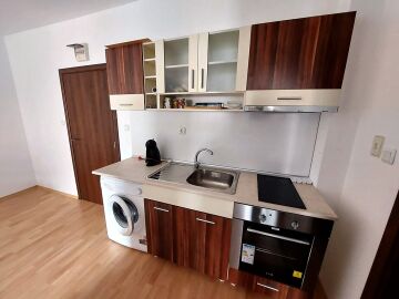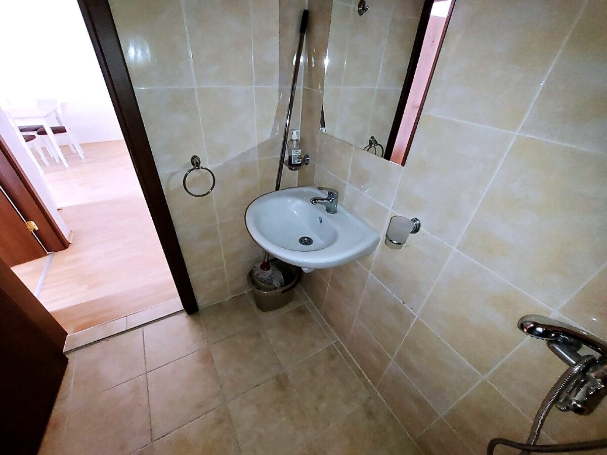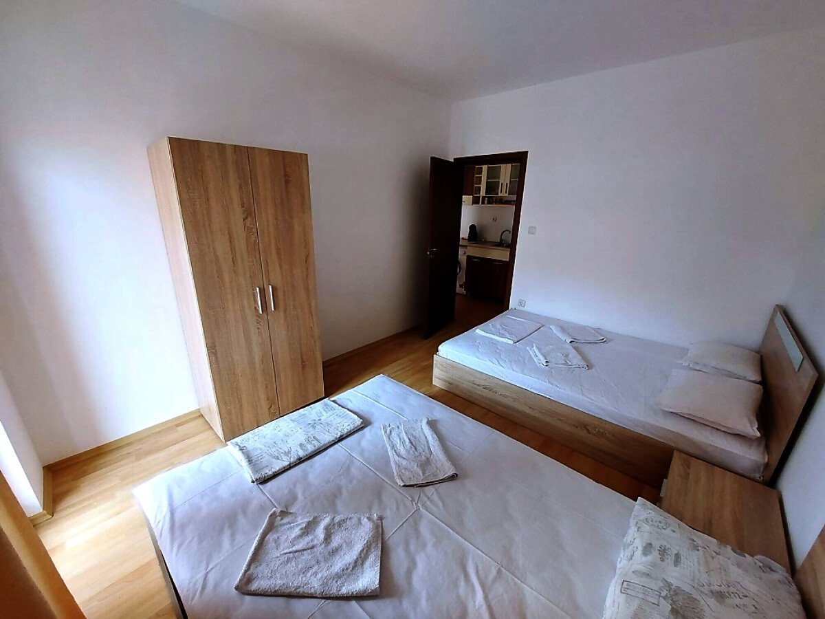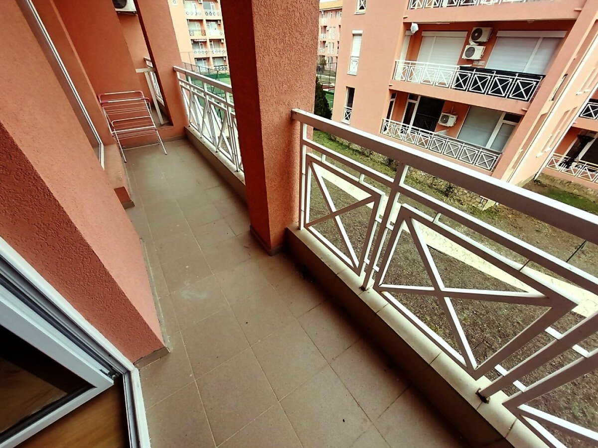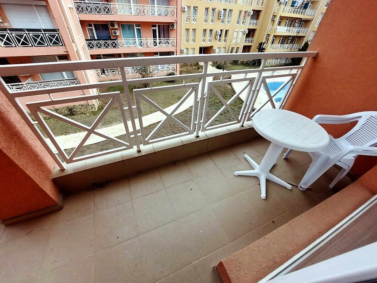 Апартаментът е много функционален, със следното разпределение – голяма всекидневна с трапезария и кухненски бокс, спалня, баня с тоалетна, тераса с гледка към басейна и вътрешната част на комплекса. Продава се с техника и хубаво обзавеждане, готов за нанасяне.
