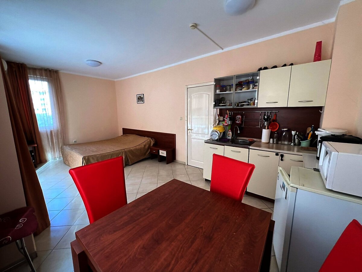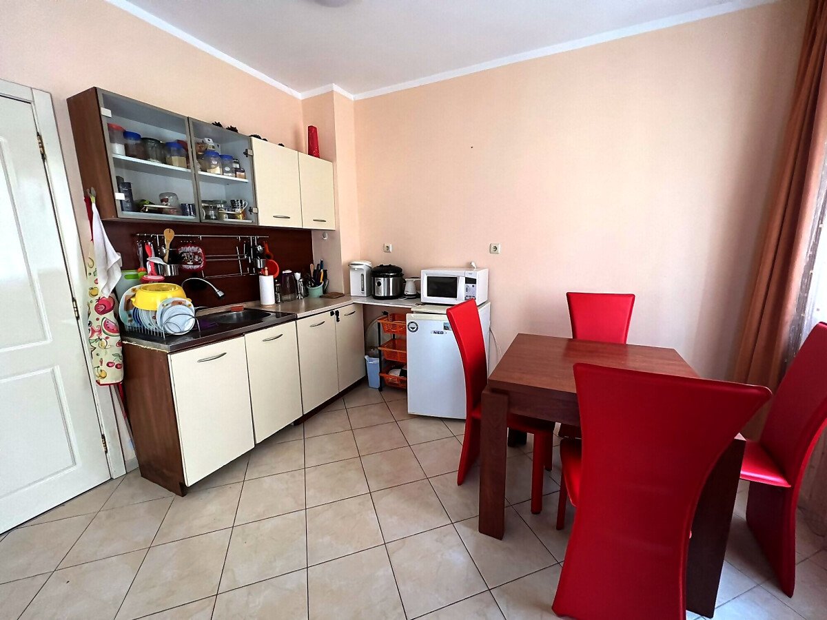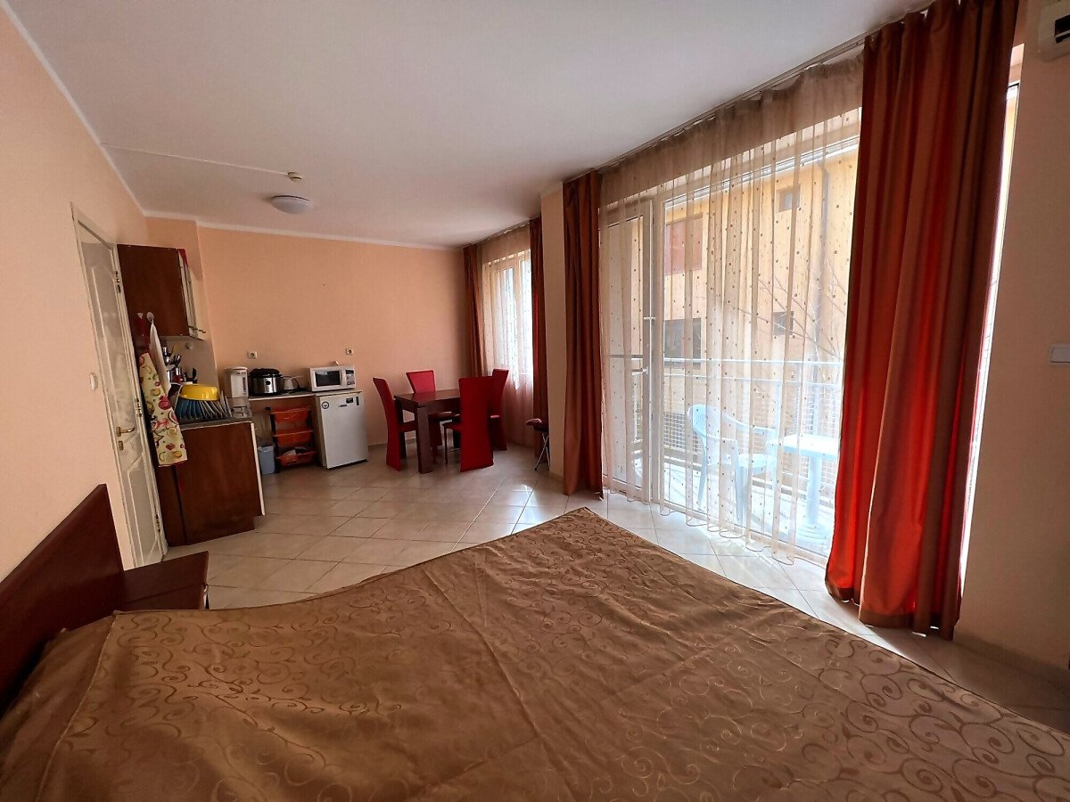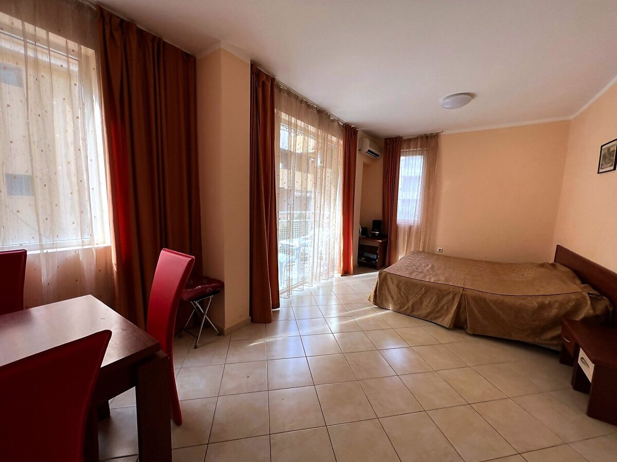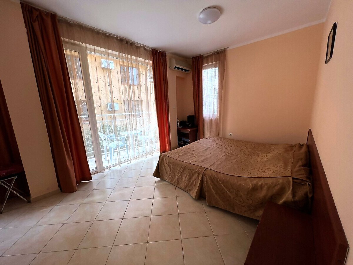 Предлагаме за продажба двустаен апартамент в комплекс „Бахами“, Слънчев бряг. Комплексът е разположен в централната част на курорта, но същевременно далеч от шумни улици, на тихо и спокойно място. В непосредствена близост има голям супермаркет, магазини, заведения, аквапарк, летни атракции. Плажната ивица и морето се намират на 550 метра разстояние.