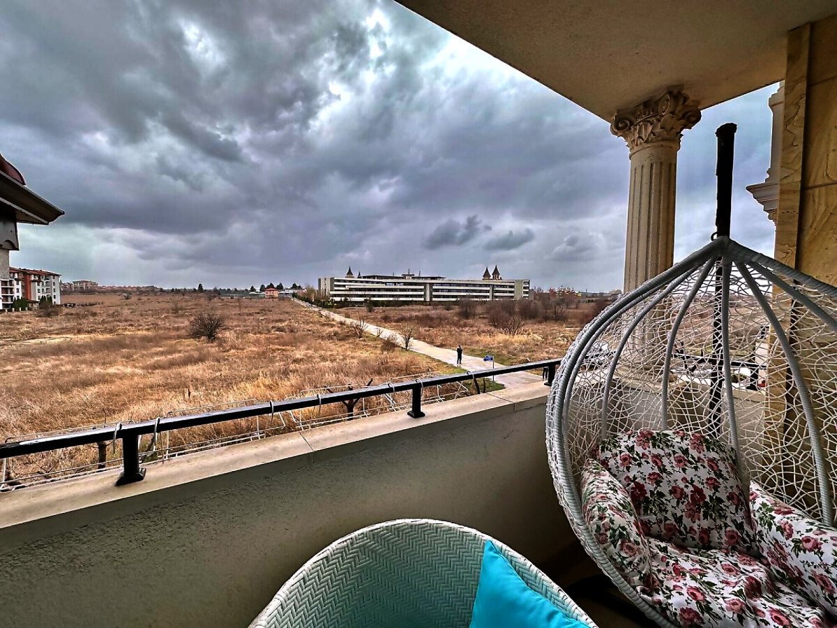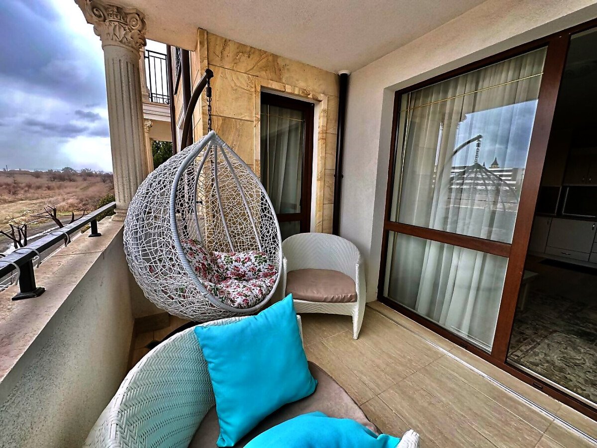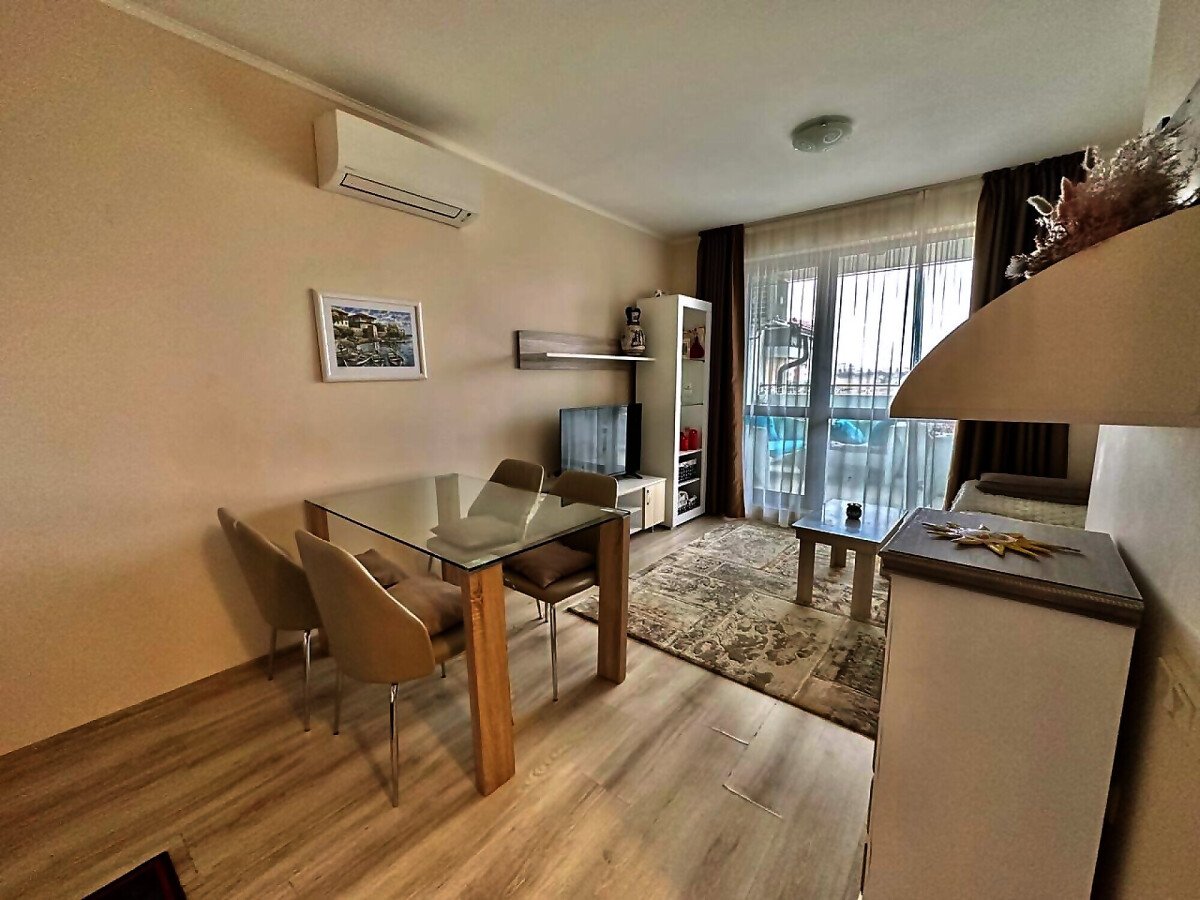 Предлагаме за продажба луксозен двустаен апартамент в комплекс „Посейдон“. Той се състои от 7 сгради, намиращи се в сърцето на историческия град Несебър, само на 350 метра от плажната ивица. „Посейдон“ впечатлява с неокласически стил и висококачествено строителство, а всеки апартамент в сградата – с луксозно изпълнение. Годишната такса поддръжка за този прекрасен комплекс е 12 евро за кв.м.