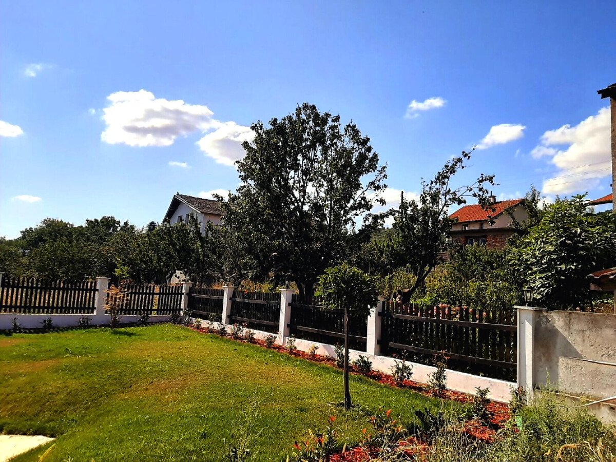 Дворът е разделен на две части – вътрешната част е озеленена, засадени са овощни дръвчета, а пред къщата има място за паркиране.