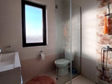 Втори етаж – спалня с гледка към морето от прозореца, втора спалня с тераса, баня с тоалетна.