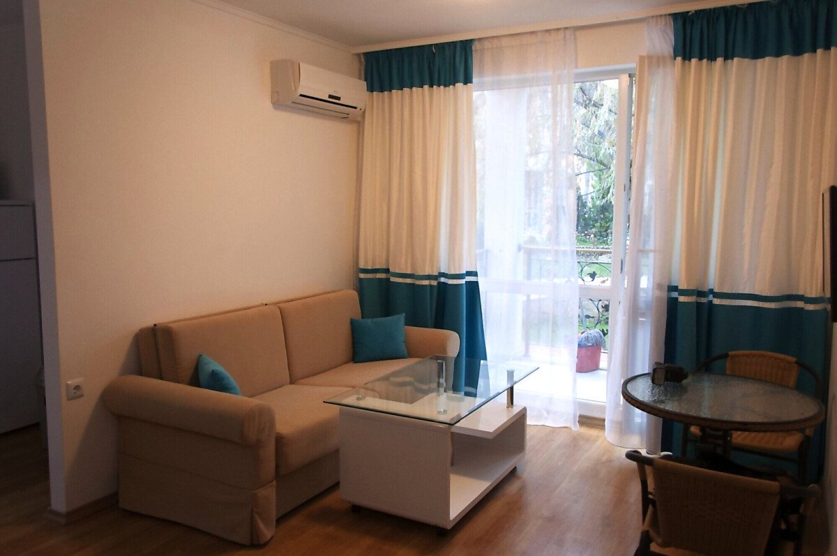 Апартаментът, който Ви предлагаме в този комплекс, е чудесен двустаен апартамент със самостоятелен изход към градината и достъп до общите части. Състои се от входно антре, просторна всекидневна с обособен кухненски бокс и зона за хранене, спалня, баня с тоалетна и душ кабина, самостоятелна веранда. Продава се с целия пакет мебели и електротехника, в отлично състояние, готов за нанасяне.