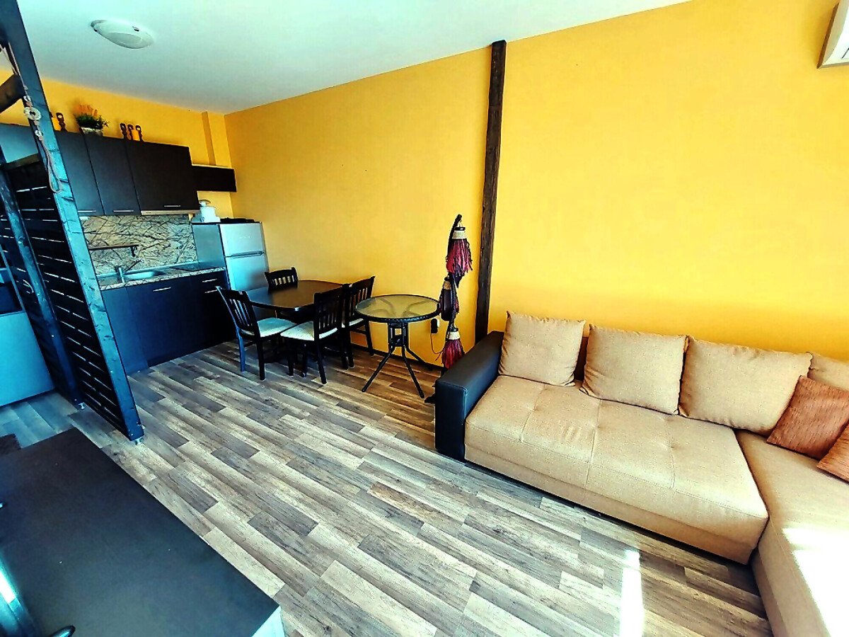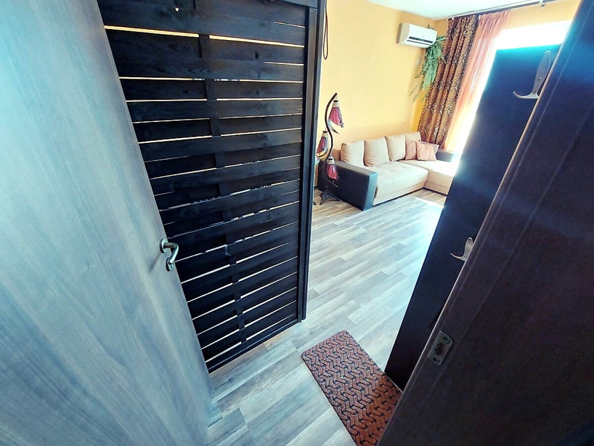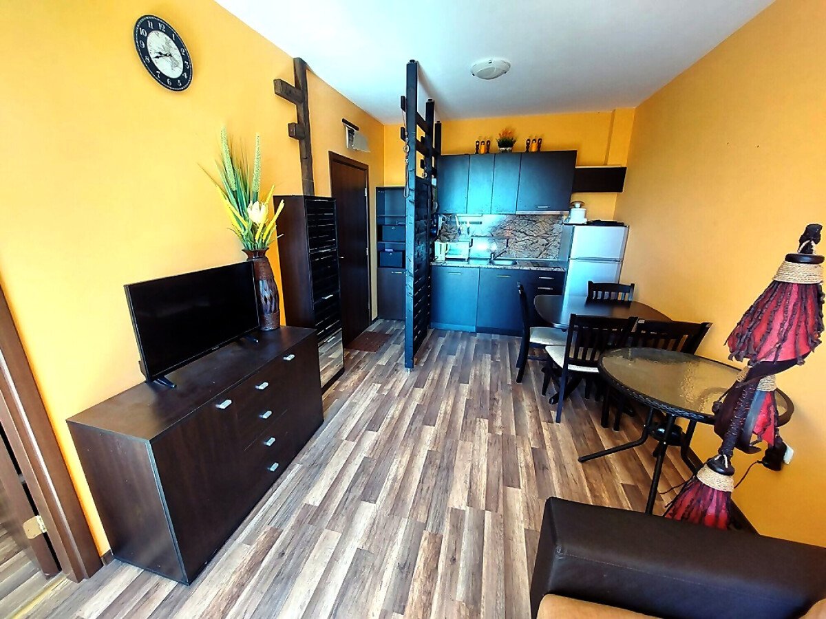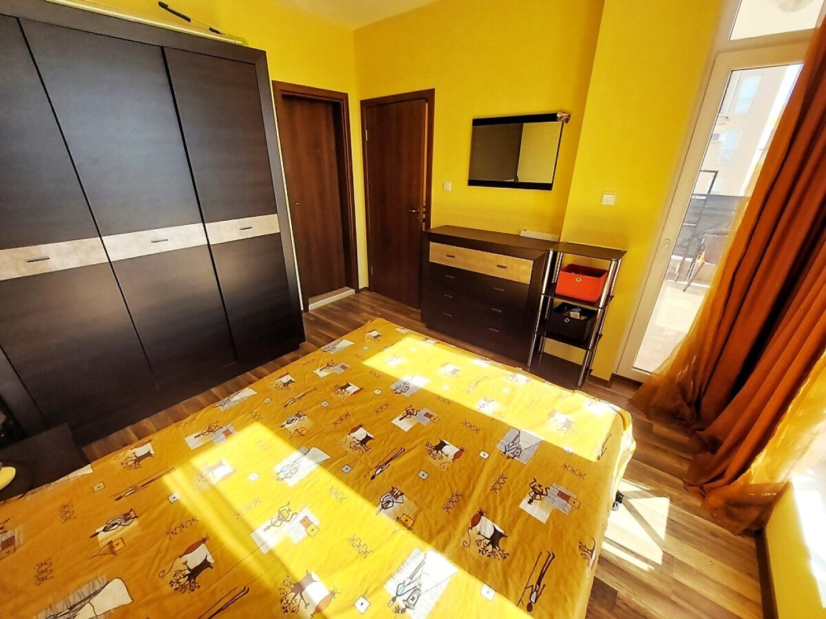 Апартаментът е светъл и функционален, със следното разпределение – всекидневна с обособен малък кухненски бокс и зона за хранене, спалня, баня с тоалетна и душ кабина, тераса. Продава се с целия пакет обзавеждане и оборудване, както е на снимките. Имотът е в отлично състояние, готов за нанасяне.