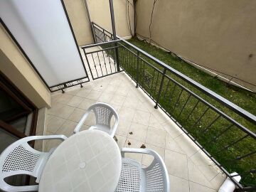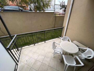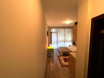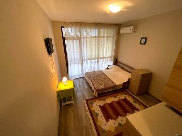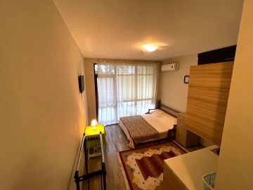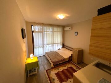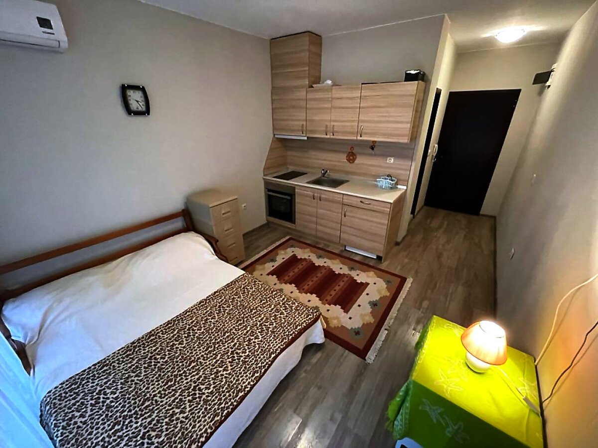 Ние Ви предлагаме да станете собственик на чудесно студио в този комплекс. Имотът е функционален, със следното разпределение – входно антре, всекидневна с обособена спалня и малък кухненски бокс, баня с тоалетна и душ кабина, тераса с гледка към двора. Продава се с целия пакет обзавеждане и техника, както е на снимките.
