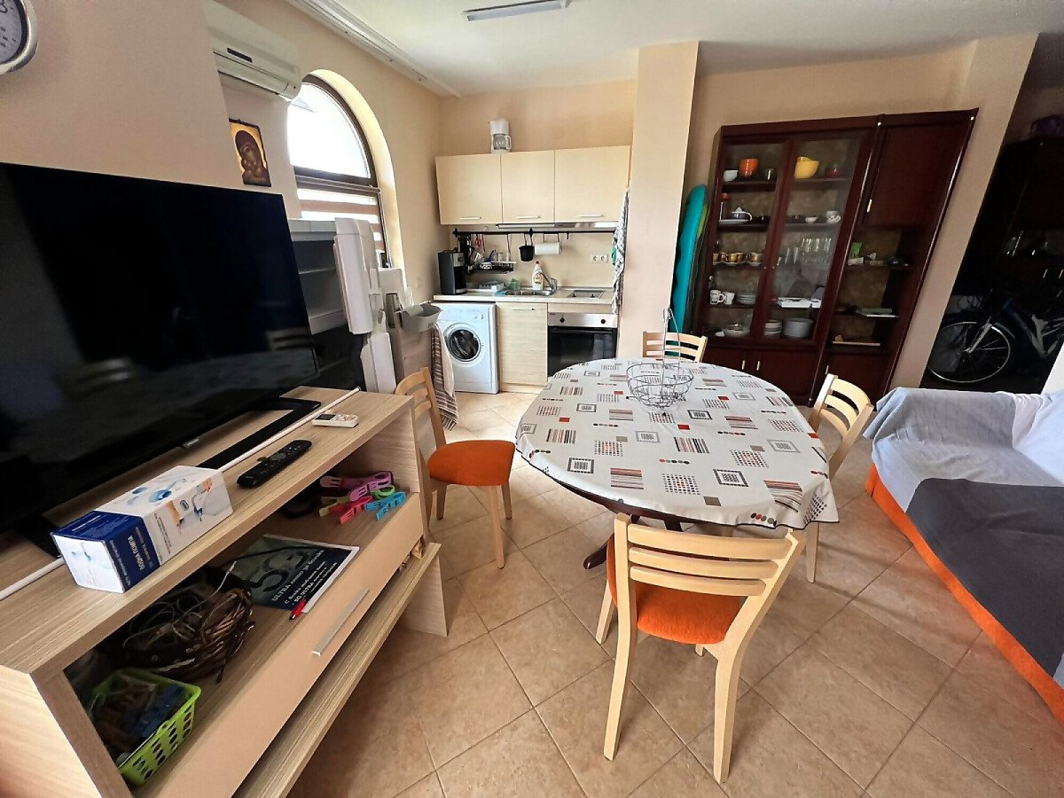 Имотът е разположен на пети, предпоследен етаж, като в сградата има асансьор. Продава се с целия пакет обзавеждане и оборудване, както е на снимките, в много добро състояние.