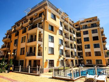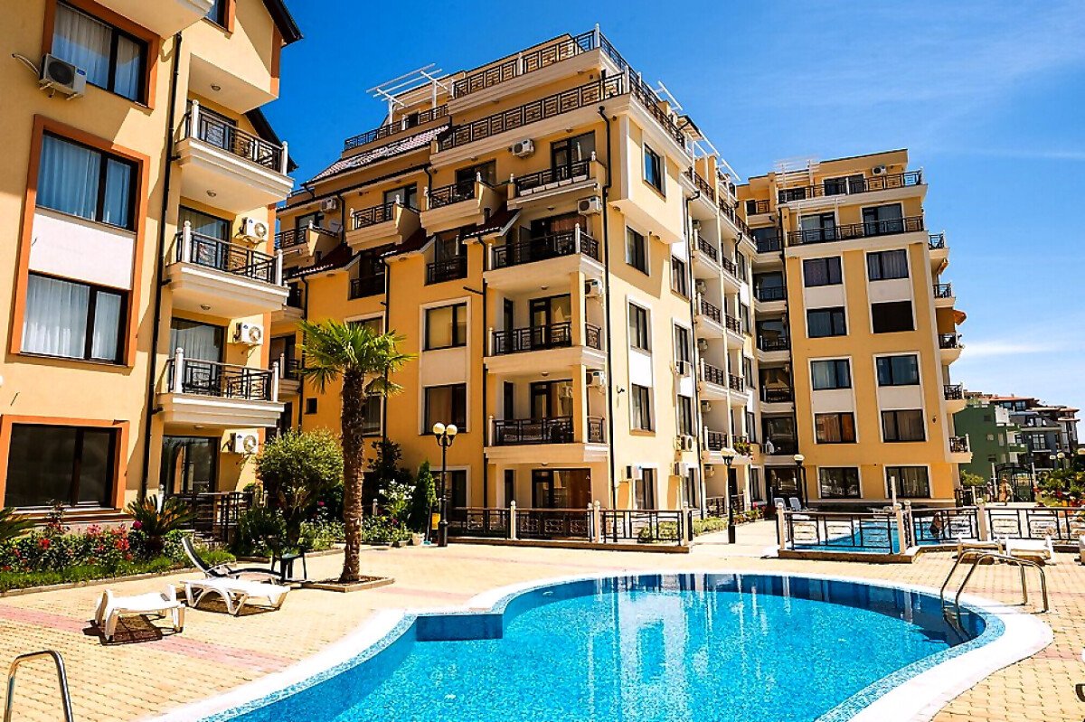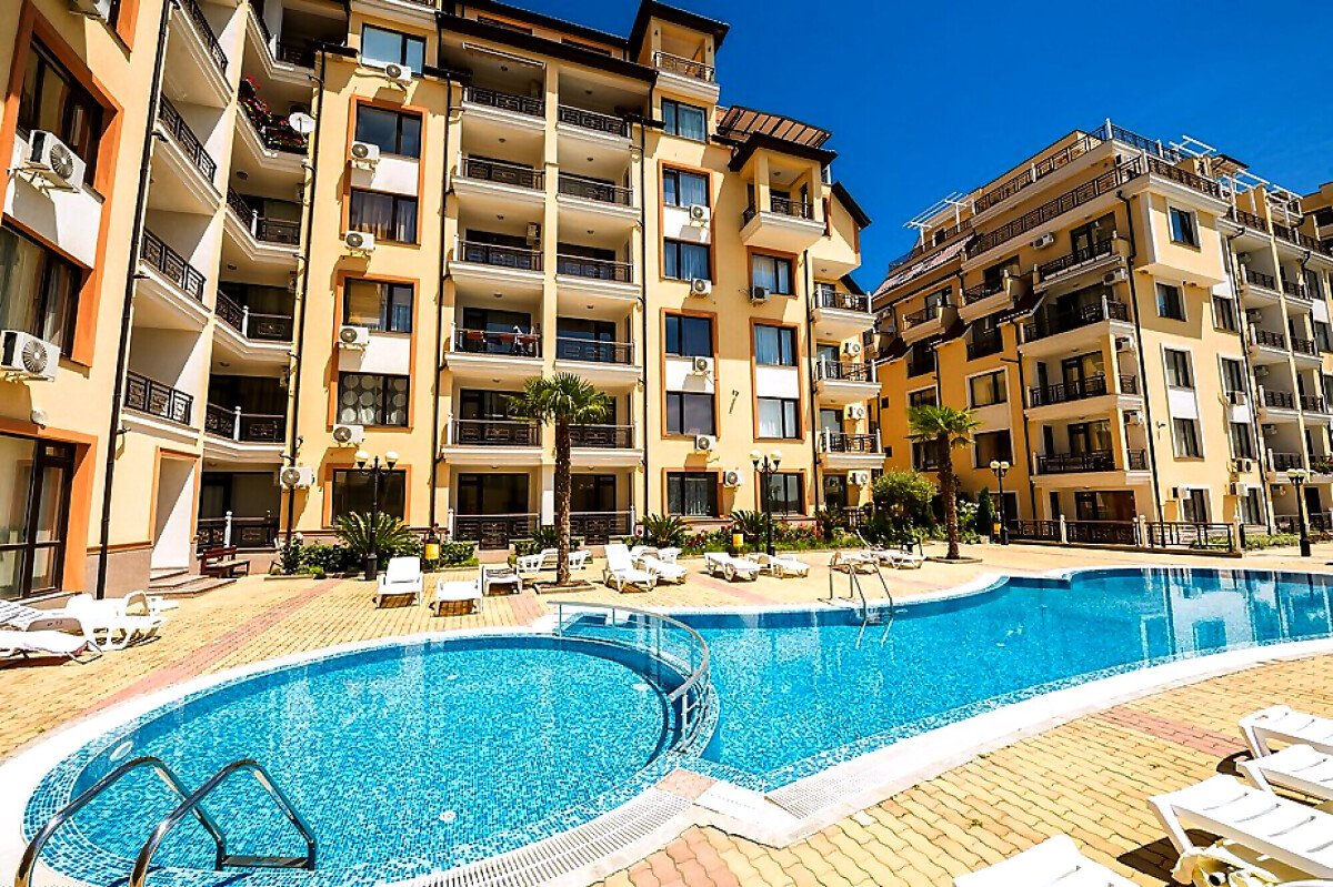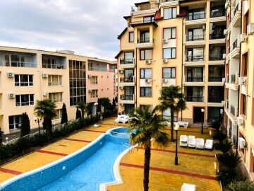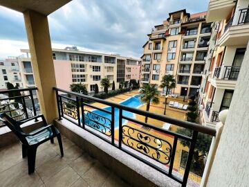 Предлагаме за продажба двустаен апартамент с гледка към басейна в чудесния комплекс „Радуга 2“, разположен в курортното градче Свети Влас. Местоположението е отлично – само на 350 метра от плажната ивица, в район с добре развита инфраструктура и удобни комуникации. На 3 км разстояние се намира популярният морски курорт Слънчев бряг, където може да откриете луксозни хотели и ресторанти, магазини, летни атракции.
