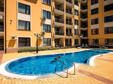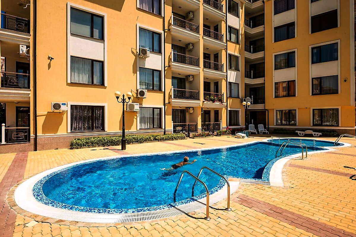 На разположение на собствениците и гостите има открит плувен басейн за възрастни, детски басейн, красиво озеленени площи, магазини, денонощна охрана, контролиран достъп, целогодишна поддръжка, паркинг.