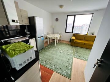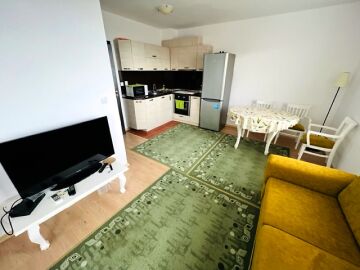 Апартаментът е слънчев и функционален, със следното разпределение – входно антре, всекидневна със зона за хранене и кухненски бокс, спалня, баня с тоалетна и душ кабина, тераса с гледка към басейна. Продава се с целия пакет оборудване и обзавеждане, както е на снимките, готов за нанасяне.
