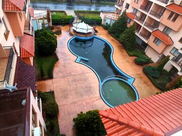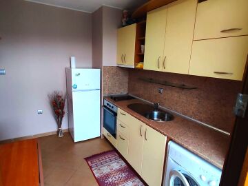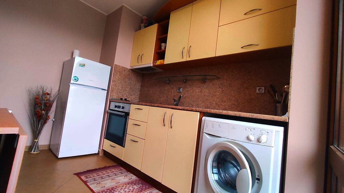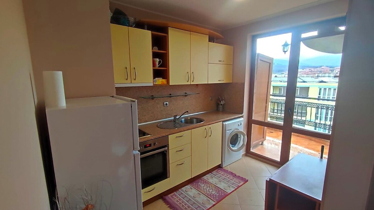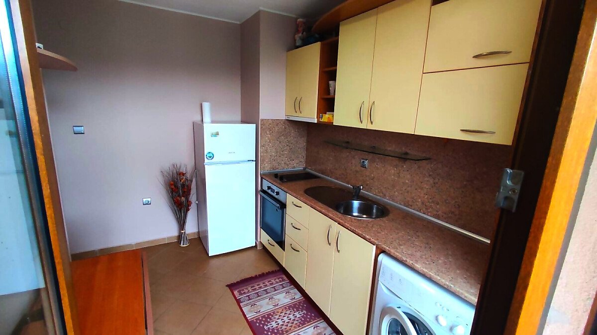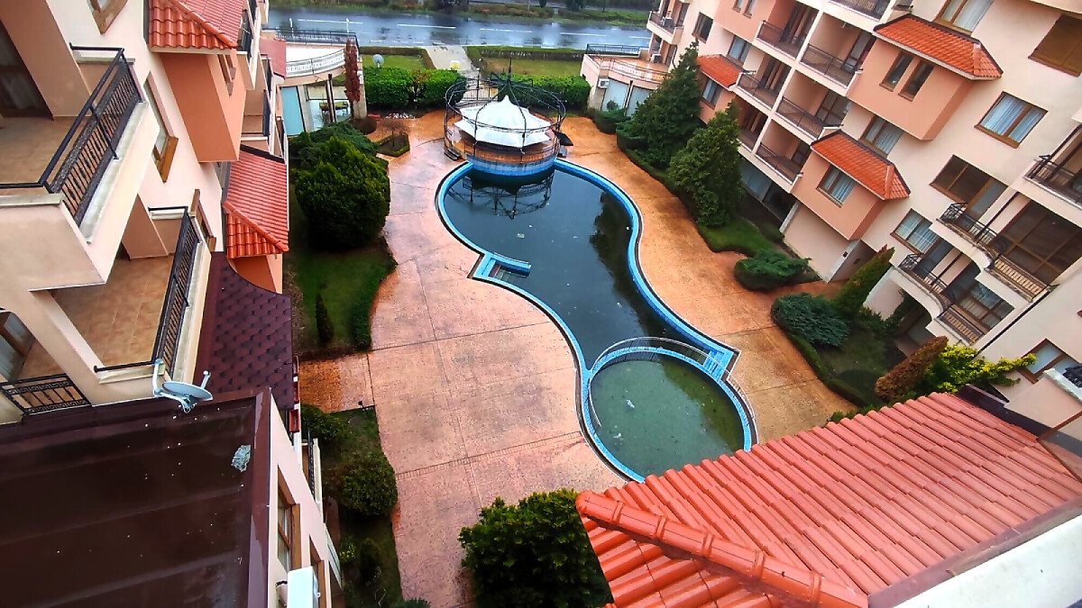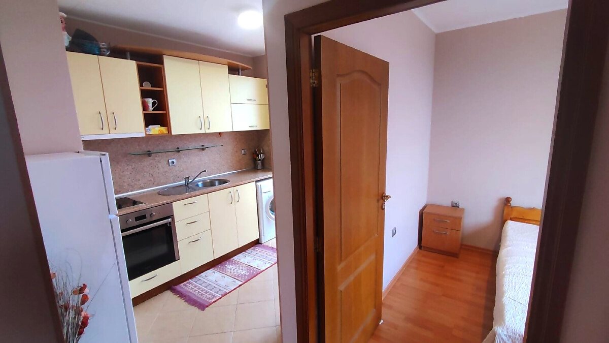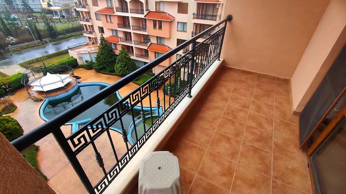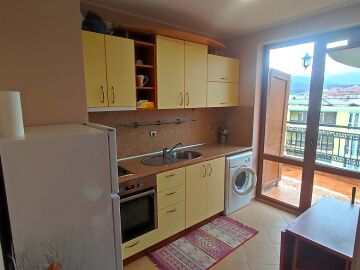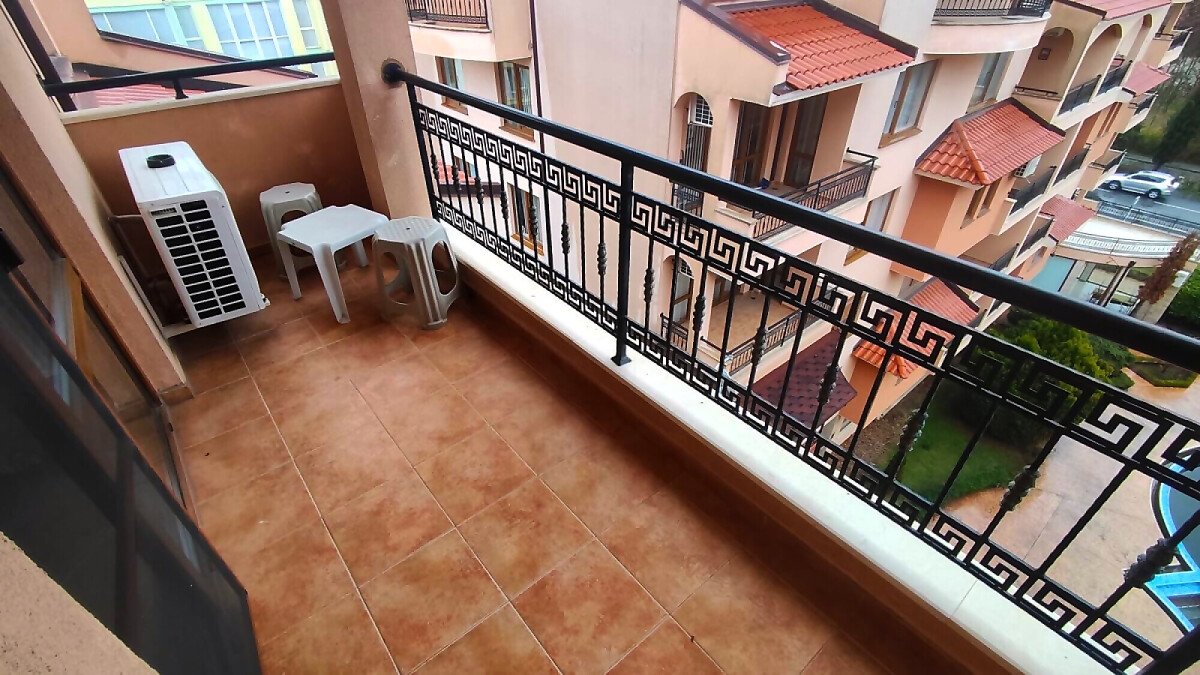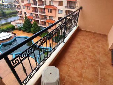 Апартаментът се състои от всекидневна, отделна кухня, спалня, баня с тоалетна и вана, две тераси. От едната тераса се разкрива красива гледка към басейна и частична към морето, а от другата – към планината. Продава се с целия пакет обзавеждане и оборудване, както е на снимките, готов за нанасяне.