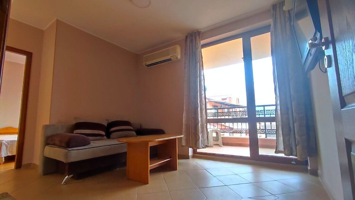 Предлагаме за продажба двустаен апартамент в комплекс „Ефир“, разположен в северната част на един от най-модерните курорти на българското крайбрежие – Слънчев бряг. На 5 минути пешеходно разстояние се намират морето и пясъчната плажна ивица.