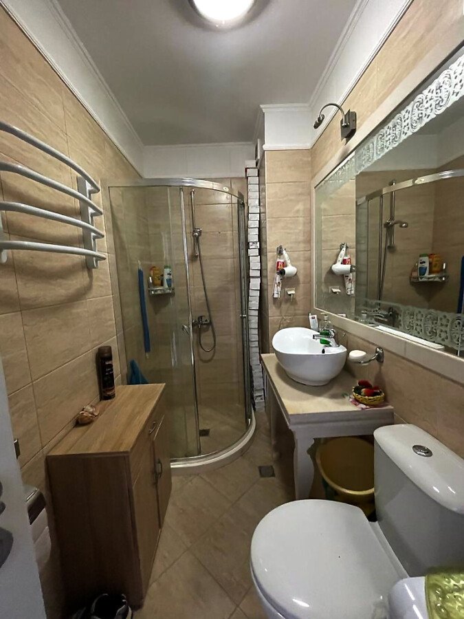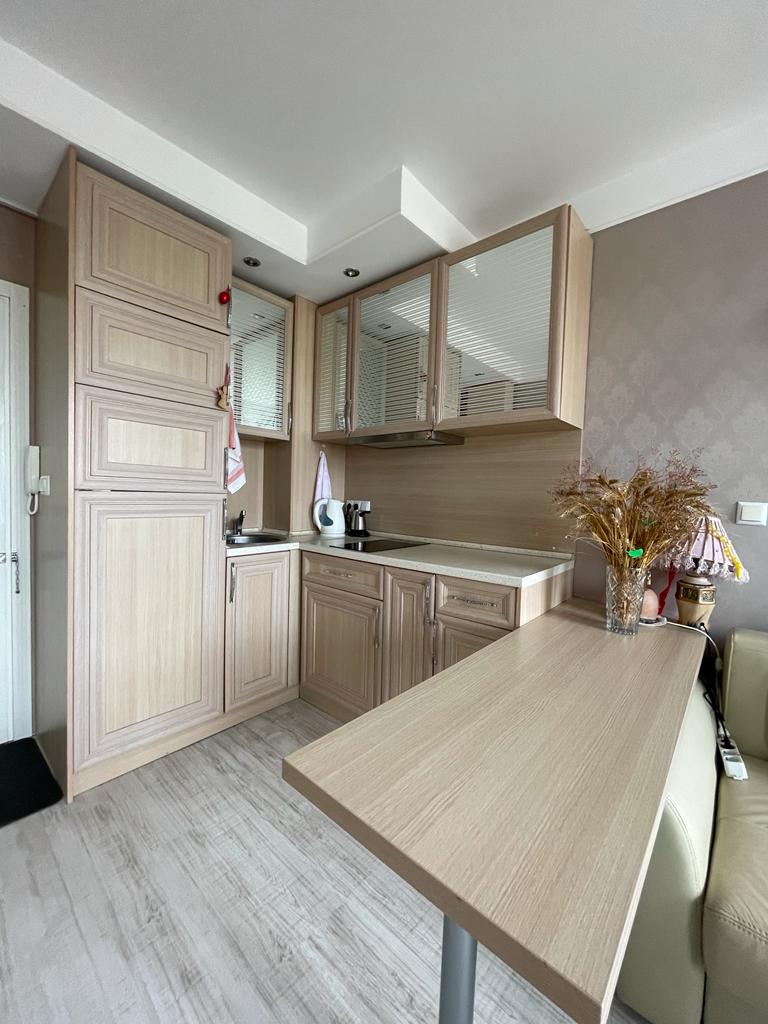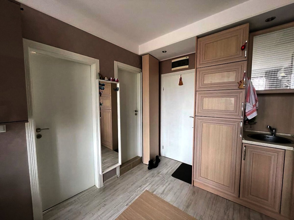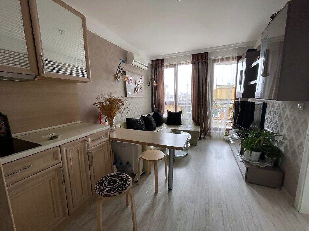 Апартаментът е разположен на последния, шести етаж, като в сградата има асансьор. Жилището е стилно обзаведено и има следното разпределение – всекидневна с обособен кухненски бокс, спалня, баня с тоалетна и душ кабина, тераса. Продава се оборудван с необходима електротехника, обзаведен с качествени и модерни мебели, в отлично състояние, готов за нанасяне.