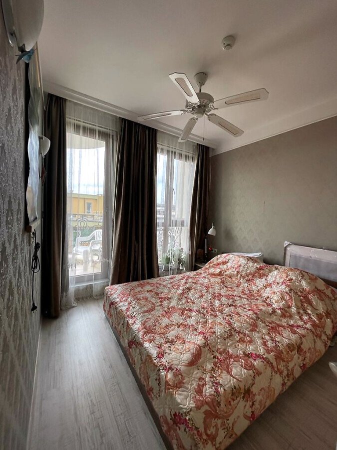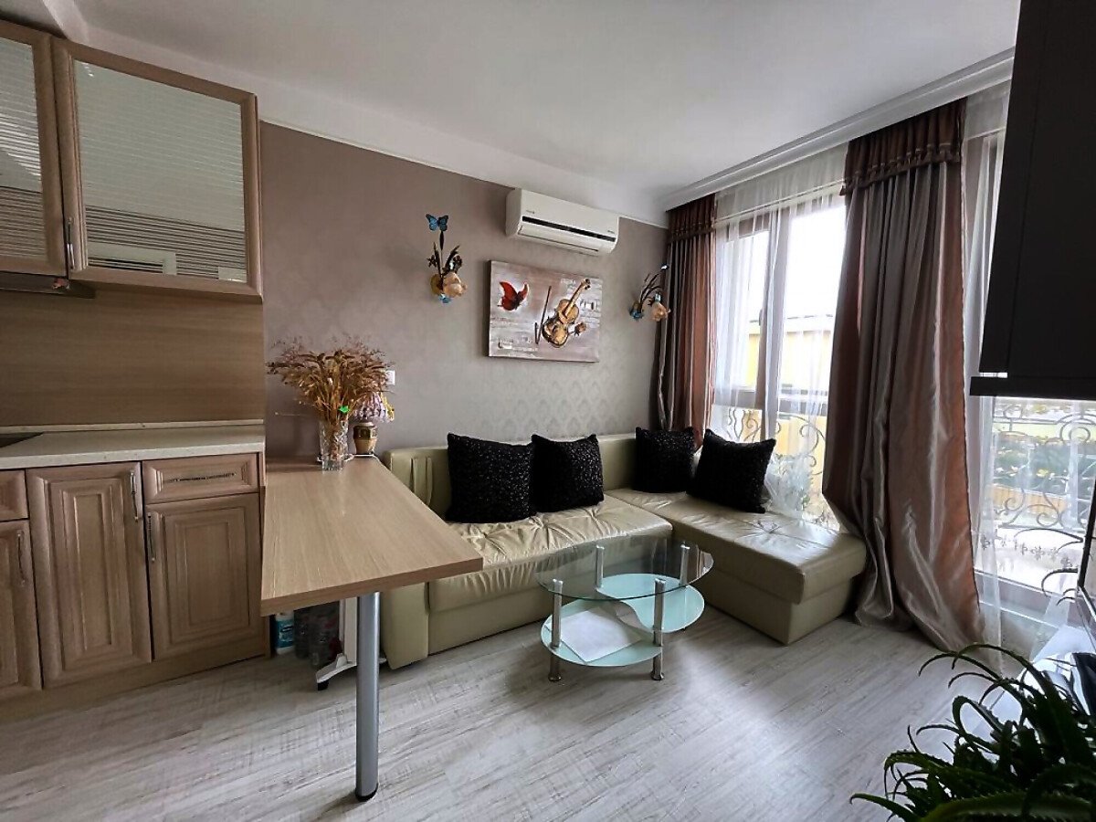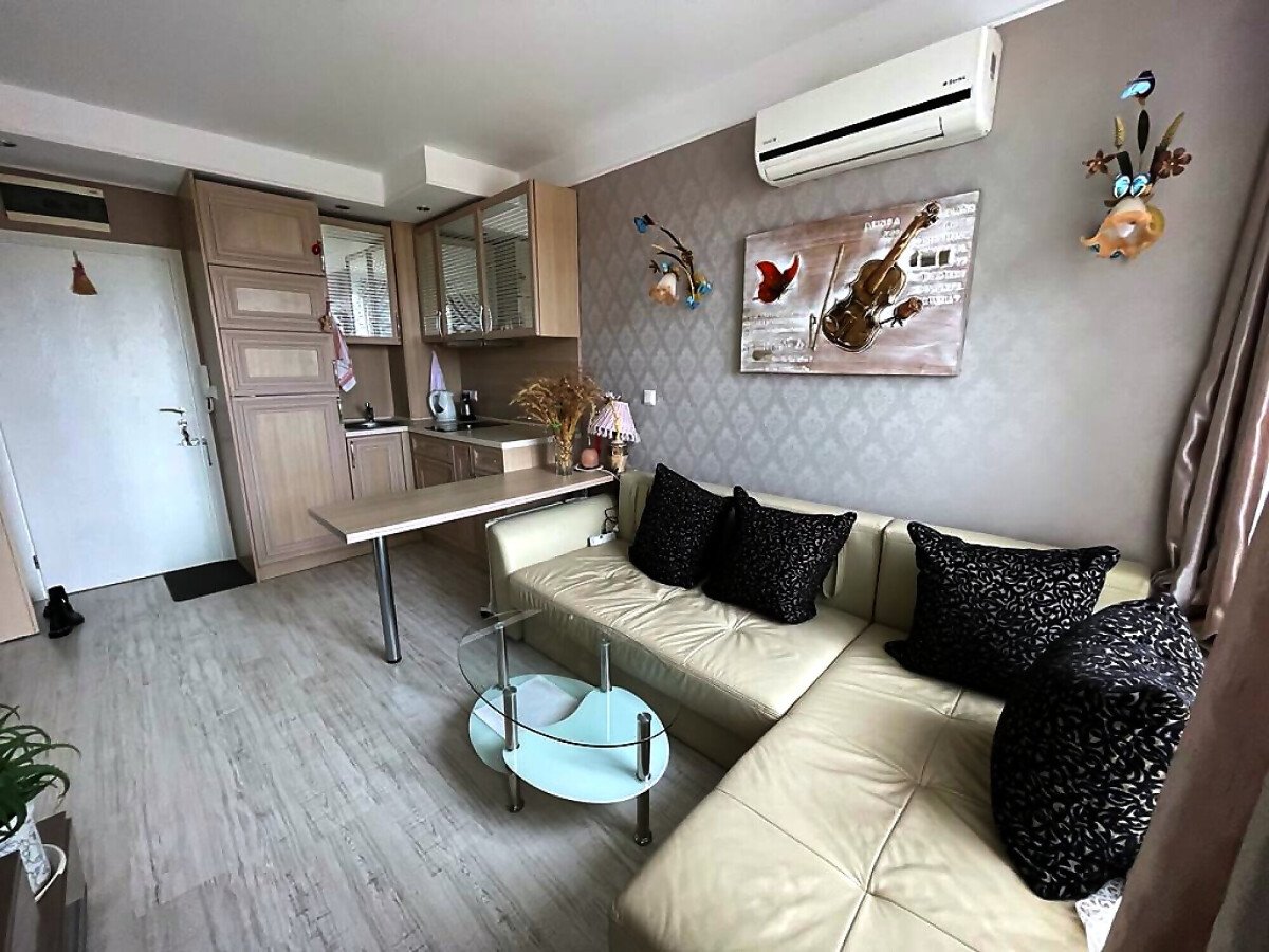 Предлагаме за продажба уникален двустаен апартамент в луксозния комплекс „Хармони Суитс Монте Карло“, разположен в тихата част на един от най-атрактивните морски курорти на българското крайбрежие – Слънчев бряг. Пясъчната плажна ивица и морето се намират на 300 метра пешеходно разстояние. Комплексът се състои от 3 сгради, свързани помежду си с прекрасна озеленена територия.