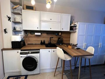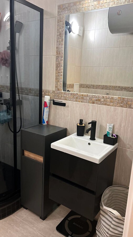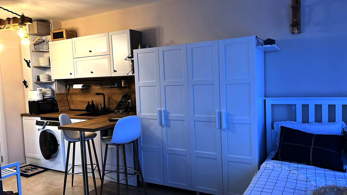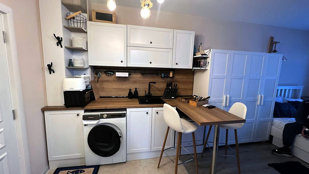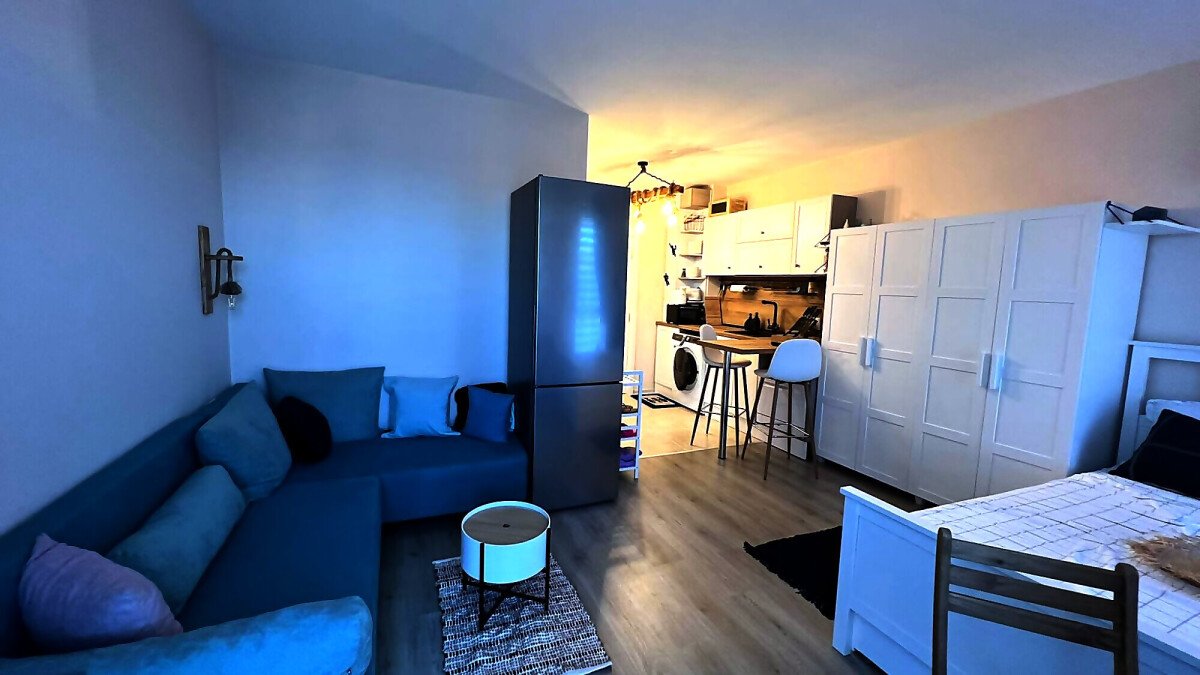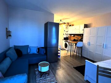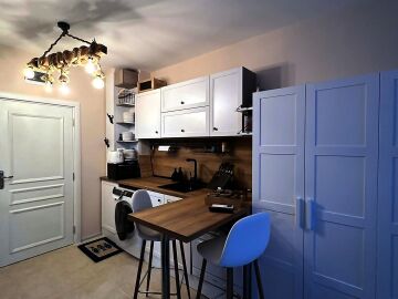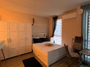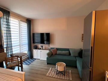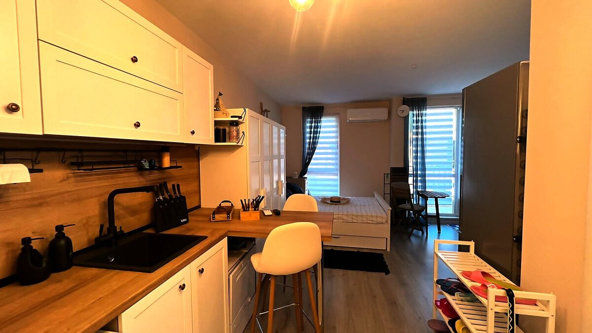 Ние Ви предлагаме да станете собственик на прекрасно студио в този комплекс. Имотът е уютен и много функционален, със следното разпределение – всекидневна с обособен кухненски бокс, кът за хранене и спалня, баня с тоалетна и душ кабина, тераса с красива гледка към басейна и вътрешната част на комплекса. Продава се с обзаведен с модерни и стилни мебели, напълно оборудван, готов за нанасяне.