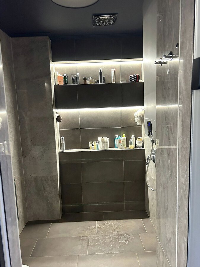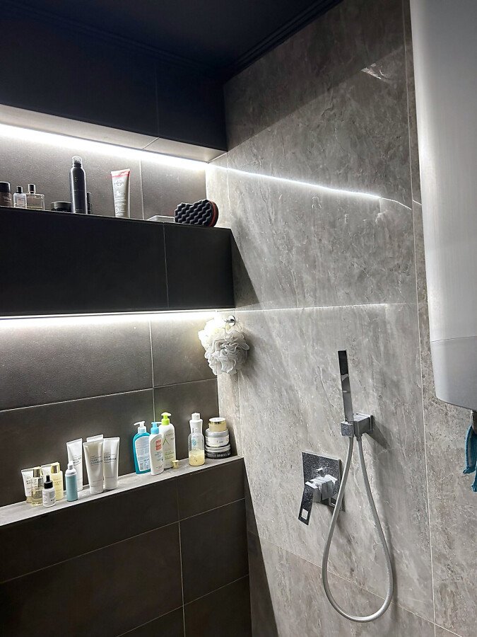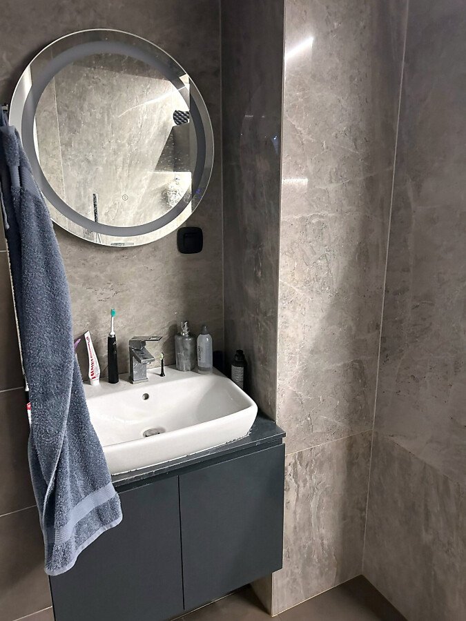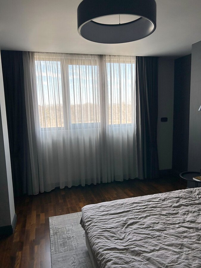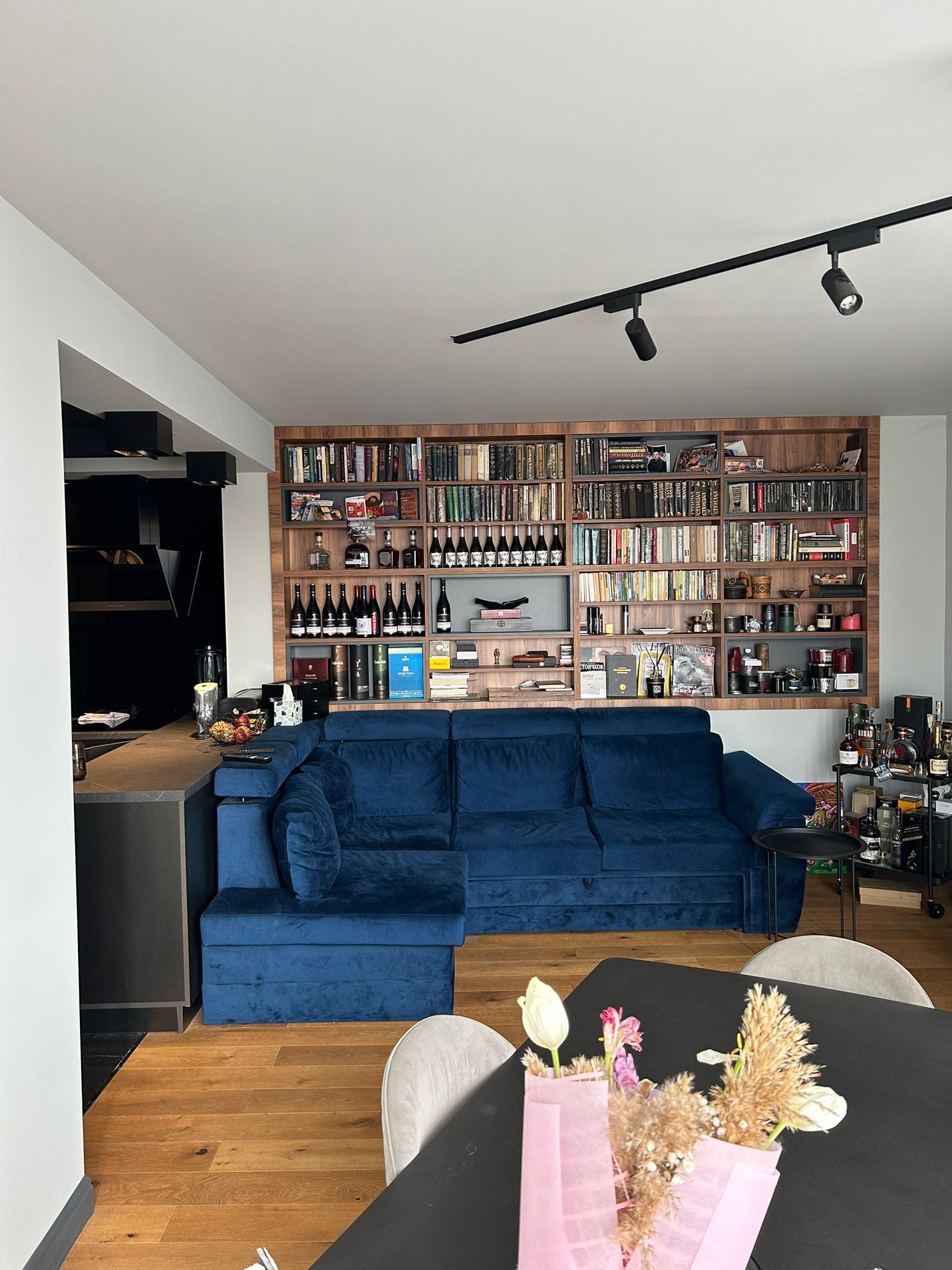 Апартаментът е разположен на четвърти етаж, като в сградата няма асансьор. Площта му по документи е 86 кв.м., но реално е повече, поради присъединени две тераси. Състои се от входно антре, всекидневна с кухненски бокс и зона за хранене, баня с тоалетна и душ кабина, спалня. Обзаведен е луксозно и е оборудван с всички необходими електроуреди.