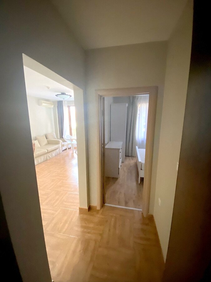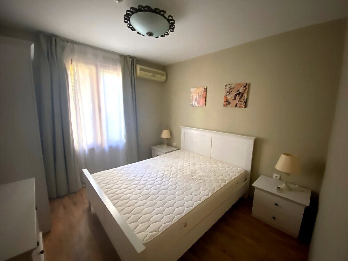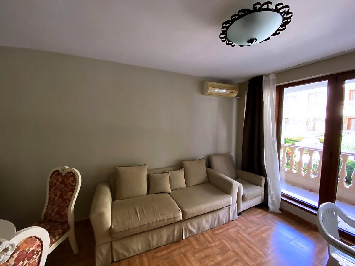 Апартаментът е много функционален, със следното разпределение – входно антре, всекидневна с кухненски бокс и обособен кът за хранене, спалня, баня с тоалетна, тераса с красива гледка към морето, басейна и вътрешната територия на комплекса. Продава се с качествени и модерни мебели, оборудван с електротехника, готов за нанасяне.