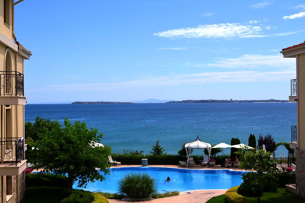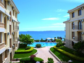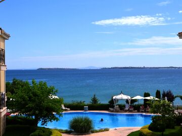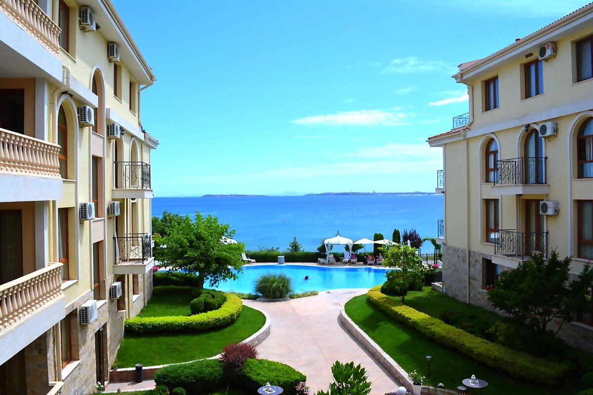Предлагаме за продажба страхотен двустаен апартамент с невероятна гледка към морето и басейна в луксозния комплекс „Роял Бей“, разположен на първа линия море, само на метри пешеходно разстояние от плажната ивица в курорта Свети Влас. Районът е с много добре развита инфраструктура и удобни комуникации, като в непосредствена близост има супермаркет, летни атракции, магазини, заведения, автобусни спирки.