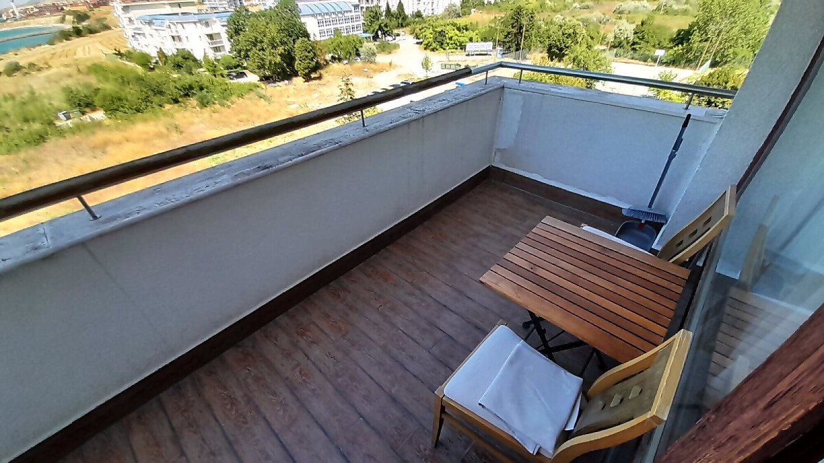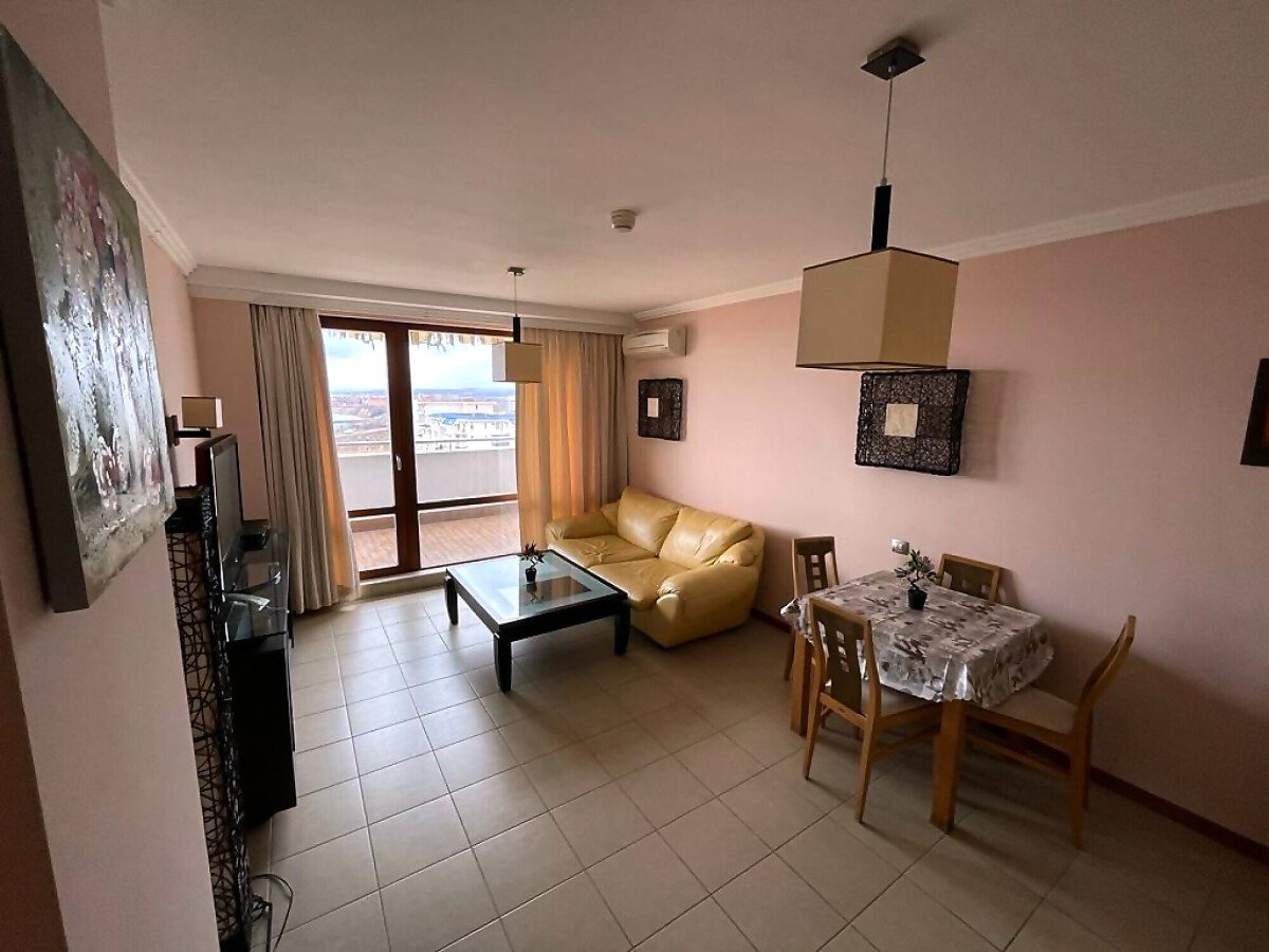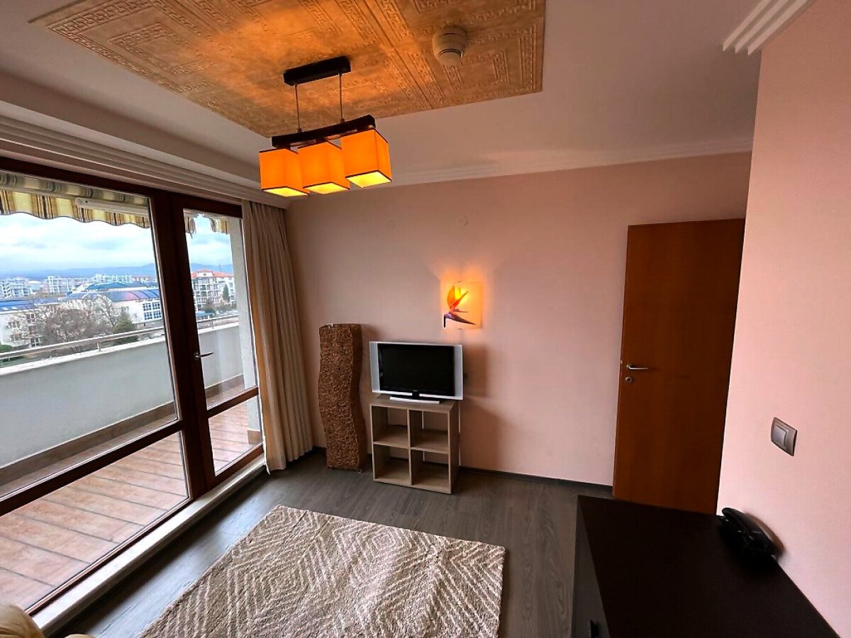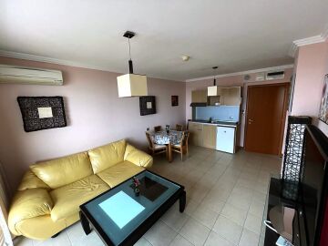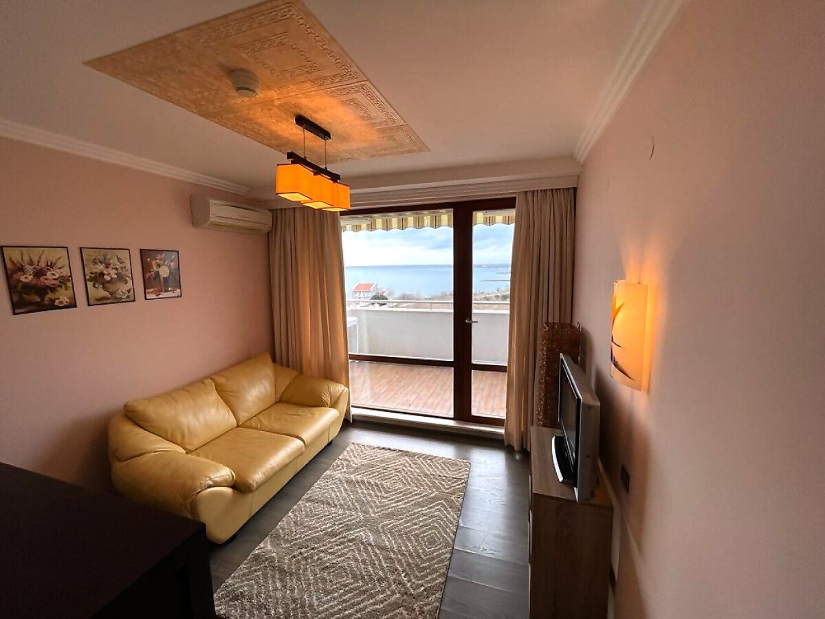 Апартаментът е слънчев и функционален, със следното разпределение – всекидневна с кът за хранене и малък кухненски бокс, спалня, баня с тоалетна и вана, тераса с уникална гледка към морето.