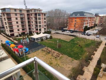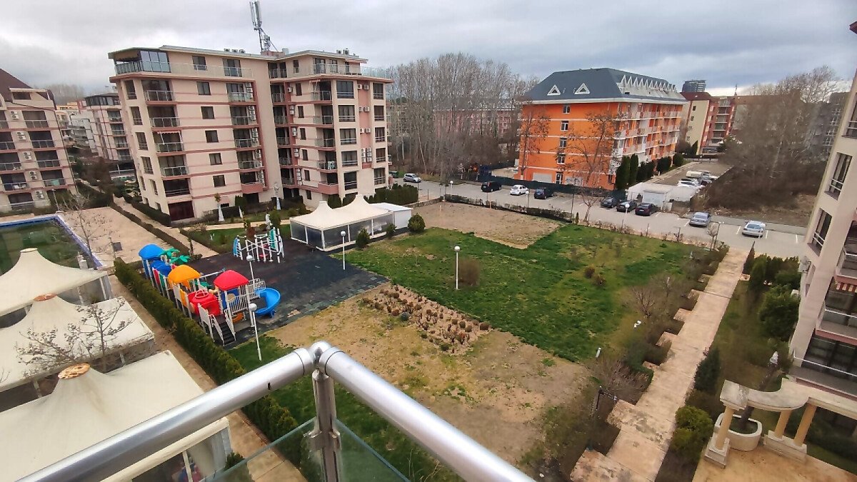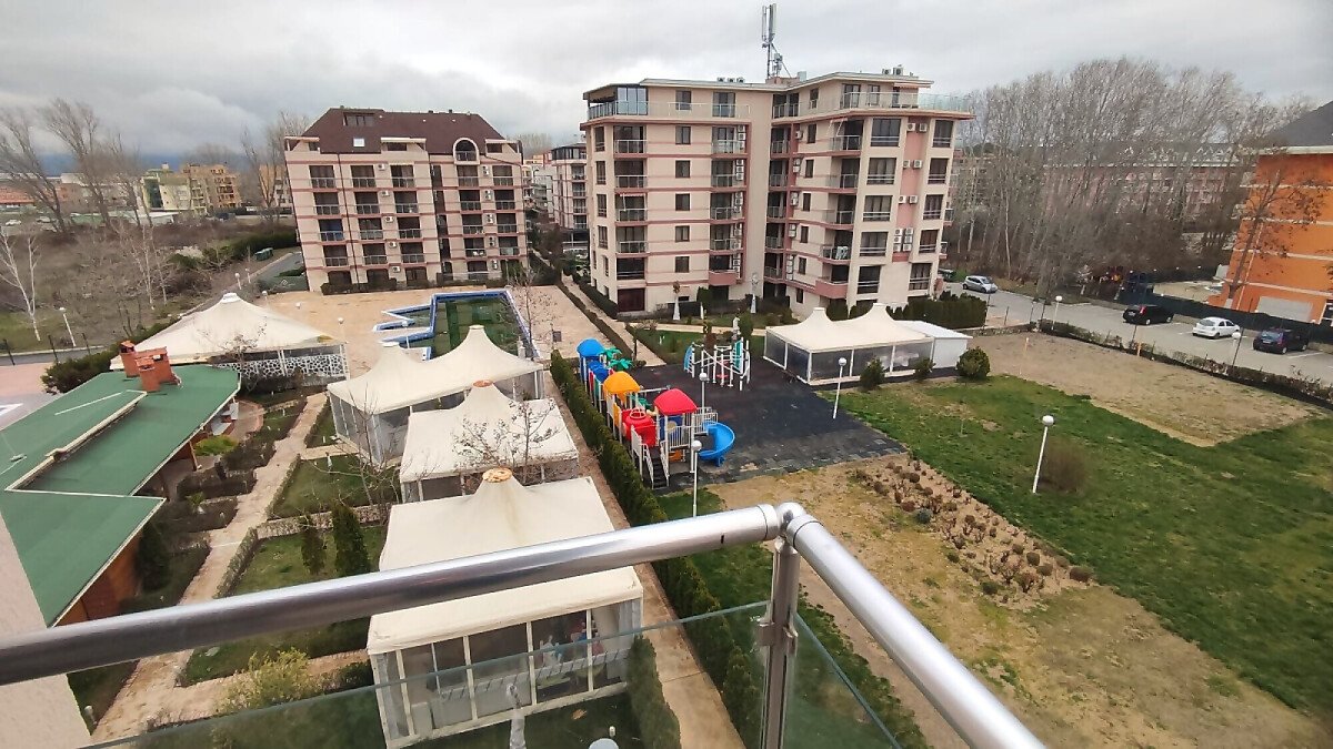Предлагаме за продажба двустаен апартамент с гледка към басейна в комплекс „Тарсис НОВА“, разположен само на 500 метра от плажната ивица в модерния курорт Слънчев бряг. Комплексът е от затворен тип и се намира в една от най-спокойните и тихи части на курорта, до красив озеленен парк.